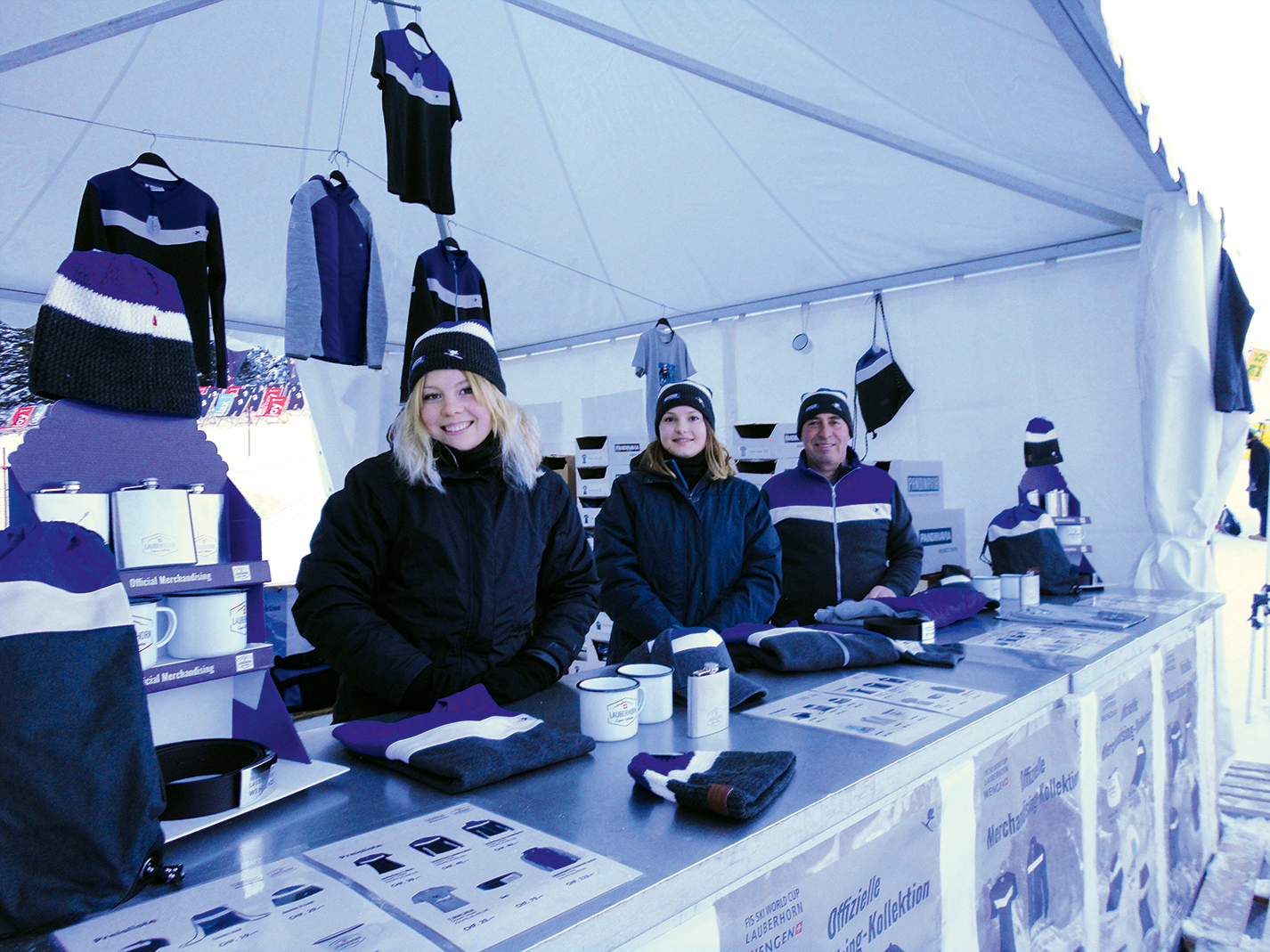 Zusammenhang auf Pandinavia zu. «Eine supercoole Herausforderung, für den schweizweit einzigartigen Traditionsanlass eine passende Kollektion zu entwickeln», sagt Reto Lauper, Projektverantwortlicher bei Pandinavia. «Jedes Merchandising-Projekt ist anders, jede Kollektion muss spezifisch auf den jeweiligen Anlass abgestimmt werden», ergänzt Sue Spiess, Leiterin der Textilen-Abteilung von Pandinavia und kreativer Kopf der Operation «Lauberhorn Collection». «Nur so ist gewährleistet, dass die Kollektion ankommt und nicht als Dutzendware wahrgenommen wird. Bei der Kreation der Artikel war es uns deshalb wichtig, die Bedürfnisse der Skifans abzubilden und auch den lokalen Bezug der Artikel zum Anlass auszudrücken. So haben wir die Grundfarben der Textilien den Farben des Wengern-Wappens angepasst und sie mit modisch aktuellen Kontrasten ergänzt», so Spiess. Sie und Projektleiter Lauper liessen sich trotz Temperaturen bis zu beissenden minus 14° C nicht davon abhalten, zusammen mit dem Projektteam die eigene Kollektion auf der Wengeneralp (1874 m) im Verkaufszelt an die Fans zu verkaufen. Im Dorf selber wurde mangels Platz kurzerhand eine leerstehende Bäckerei zum Merchandising Store umfunktioniert, was bei langjährigen Fans für Verblüffung sorgte. Anstelle der traditionellen Berliner gabs trendige Beanie-Caps und coole Shirts und Jacken! Am Ende waren alle froh: die Fans, bei denen die Kollektion super ankam und die nun zum ersten Mal hochwertige Souvenirs von ihrem Lieblingsanlass mit nach Hause nehmen konnten, das OK, dessen Anliegen es war, einen professionellen Merchandising-Partner gefunden zu haben, und das Pandinavia Team, das sich über einen beträchtlichen Umsatz freute und zwar total durchfroren, aber glücklich den Nachhauseweg antreten durfte. Die Partnerschaft mit den Lauberhornrennen, die im nächsten Jahr ihr 90-jähriges Bestehen feiern, läuft über drei Jahre und das Projektteam ist voller Ideen für die kommende Kollektion.