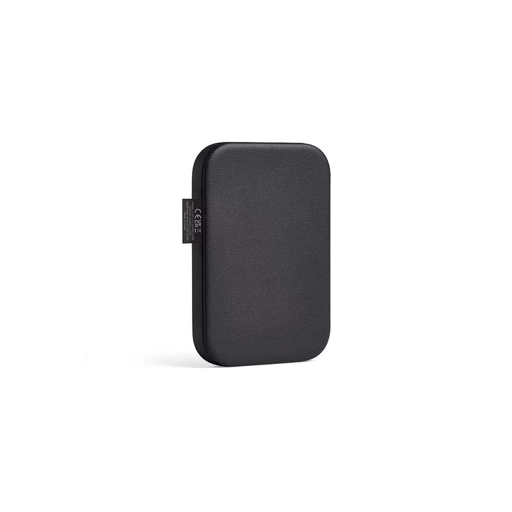 Magnetisch und kabellos! Powerbank mit edler Kunstleder-Oberfläche, einem starken Magnet sowie einer digitalen Ladestandanzeige, kompatibel mit allen QI-fähigen Geräten der neuen Generation ab iPhone 12, mit USB- und Dual-Type-C-Anschluss, inklusive Kabel