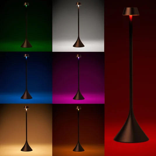 Elegante, endlos kuppel- und dimmbare Out- und Indoor Tischleuchte aus Aluminium, mit kalt- oder warmweissem Licht, 7 Lichtfarben sowie Touchfunktion, kabellos mit einer Betriebszeit von bis zu 10 Stunden, wasserdicht (IPX4), aufladbar per Induktion oder mit dem mitgelieferten USB-C-Kabel