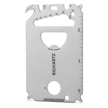 Set bestehend aus einem kleinen, präzisen Multifunktionstool aus rostfreiem Edelstahl mit 14 Funktionen; Zange mit Drahtschneider, zwei Klingen (eine mit Wellenschliff), zwei Schlitzschraubendreher, eine Schlitzschraubendreher-/Kapselheberkombination, Kreuzschlitzschraubendreher, Dosenöffner, Feile, Gürteltasche und zwei im Griff integrierte Sechskantschlüssel, sowie einem weiteren unentbehrlichen Tool aus rostfreiem Edelstahl für den Schlüsselbund, mit 16 Funktionen; Kapselheber, kleiner und grosser Schlitzschraubendreher, Kreuzschraubendreher, Kabelabzieher, zwei Fahrradspeichenschlüssel, sieben Sechskantschlüssel, Zentimetermass und Nagelzieher, wird in schöner Geschenksbox geliefert