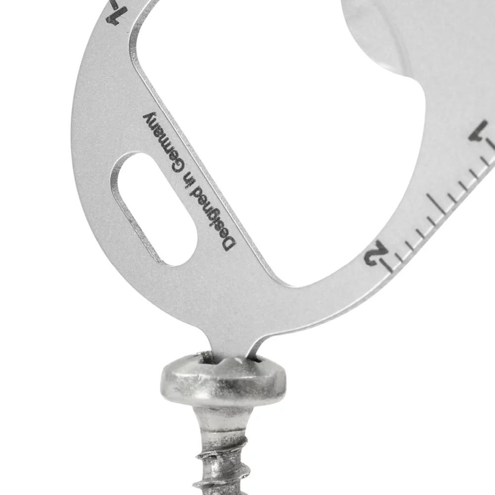 Einkaufswagenlöser für den Schlüsselbund aus rostfreiem Edelstahl, mit weiteren praktischen Funktionen; Flaschenöffner, Zentimetermass und Schraubendreher