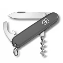 Kleines Taschenmesser aus hochwertigem, rostfreiem Stahl aus dem Hause Victorinox, mit 9 Funktionen: Kleine Klinge, Dosenöffner mit kleinem Schraubendreher, Korkenzieher, Zahnstocher, Pinzette und Ring (Anhänger)