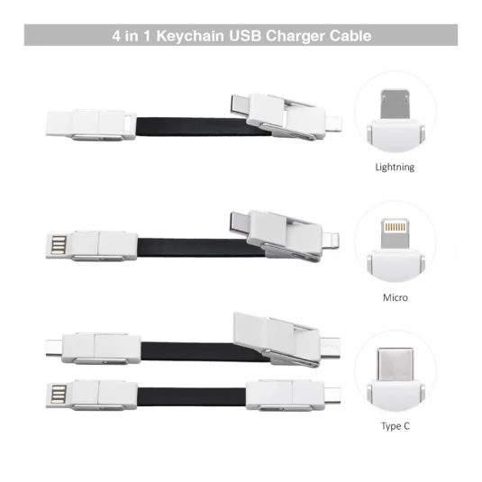 Multifunktionelles Lade- und Datenkabel aus Kunststoff, zum Aufladen von iPhone/iPad/iPod (Lightning-Anschluss), sowie Android-Smartphones, Kameras, usw.