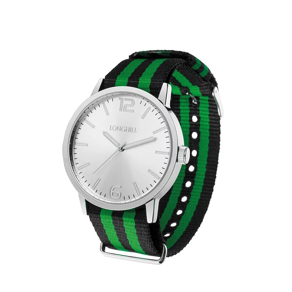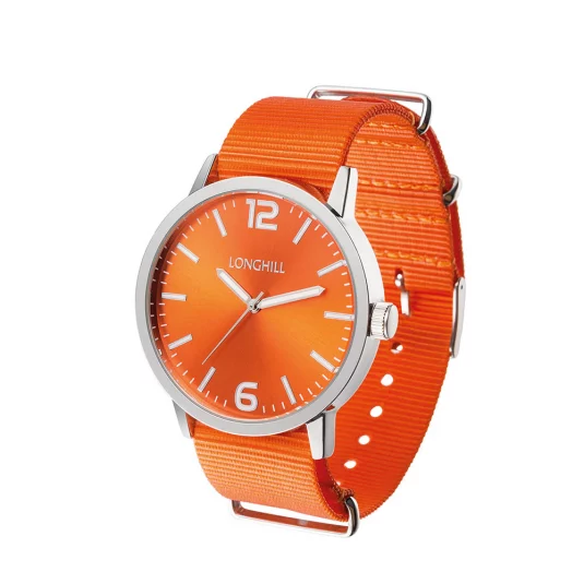 Trendige Armbanduhr mit Style! Textilarmband: 22 mm, Edelstahlgehäuse silber: Ø 45 mm, Gehäusetiefe: 7,5 mm, 3 ATM water resistent, Zifferblatt silber oder gold, Zeiger silber oder gold, Uhrwerk VX50, 3 Jahre Garantie (ausgenommen: Batterie, Glas, Krone und Armband), inklusive Box mit Fenster