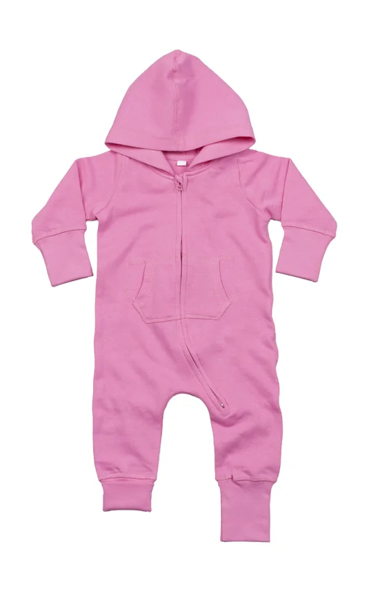 Baby All-in-One mit sehr weicher und flauschiger Innenseite, einfacher Kapuze, Sattel im Nacken, Nackenband, Zip vom Hals bis zum Unterschenkel für einfaches Anziehen und Veredeln, Kängurutasche, Breite Rippstrickbündchen an Arm- und Beinabschluss, leicht umzuetikettieren.