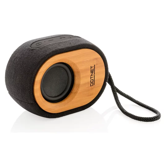 Stylischer, hochwertiger Lautsprecher aus nachhaltigem Bambus, mit Bezug aus Stoff (biologische Baumwolle 30%, Hanffasern 40%, recycletem PET 30%) - mit exzellenter Klangqualität (5W) für einen Musikgenuss von bis zu 8 Stunden und einer Reichweite von bis zu 10 Meter