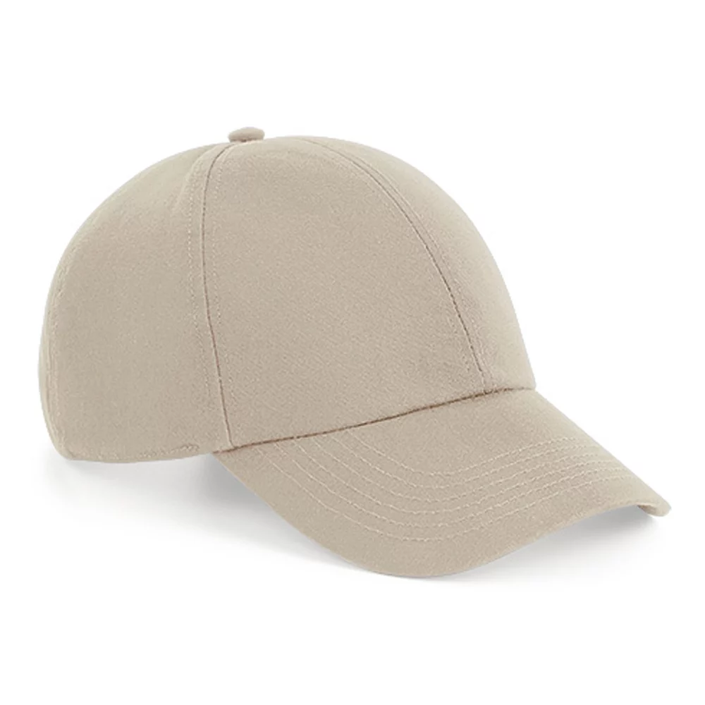 6-Panel-Cap aus Bio-Baumwollstoff, strukturiertes Frontpanel, mit Abreissetikett für einfaches Neulabeln, vorgeformter Schirm, gleichfarbiges Verschlussband mit Metallverschluss.