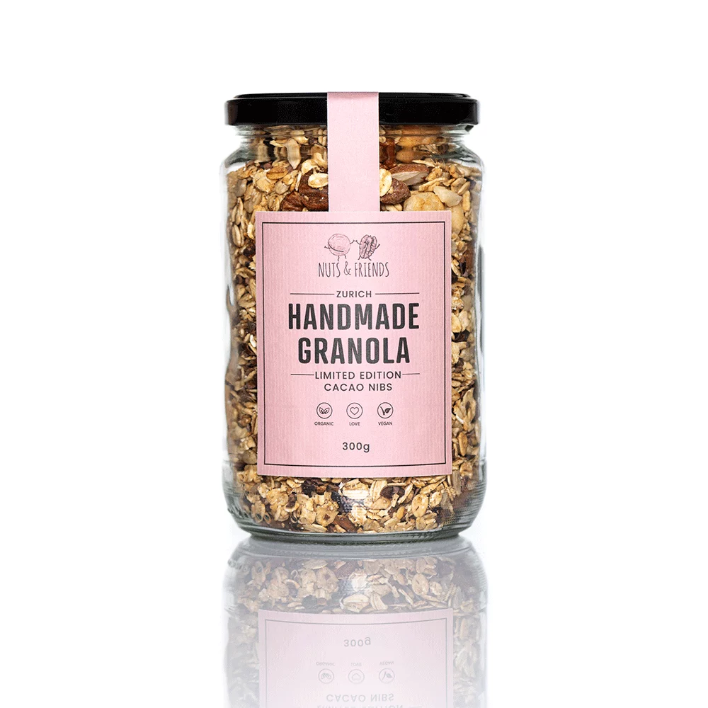 Gesund, lecker, vegan – kulinarische Leckereien für Ernährungsbewusste im Glas! Swiss made, auserlesene BIO-Zutaten und Nüsse in 6 verschiedenen Kombinationen und Geschmacksrichtungen (The Original, The Basic, The Kokos, The Chocolate, Cacao Nibs, The Raspberry), zum Geniessen als Topping oder einfach zwischendurch für den kleinen Hunger, im umweltfreundlichen Glas luftdicht verpackt, Haltbarkeit ca. 3 Monate, Inhalt 300 g