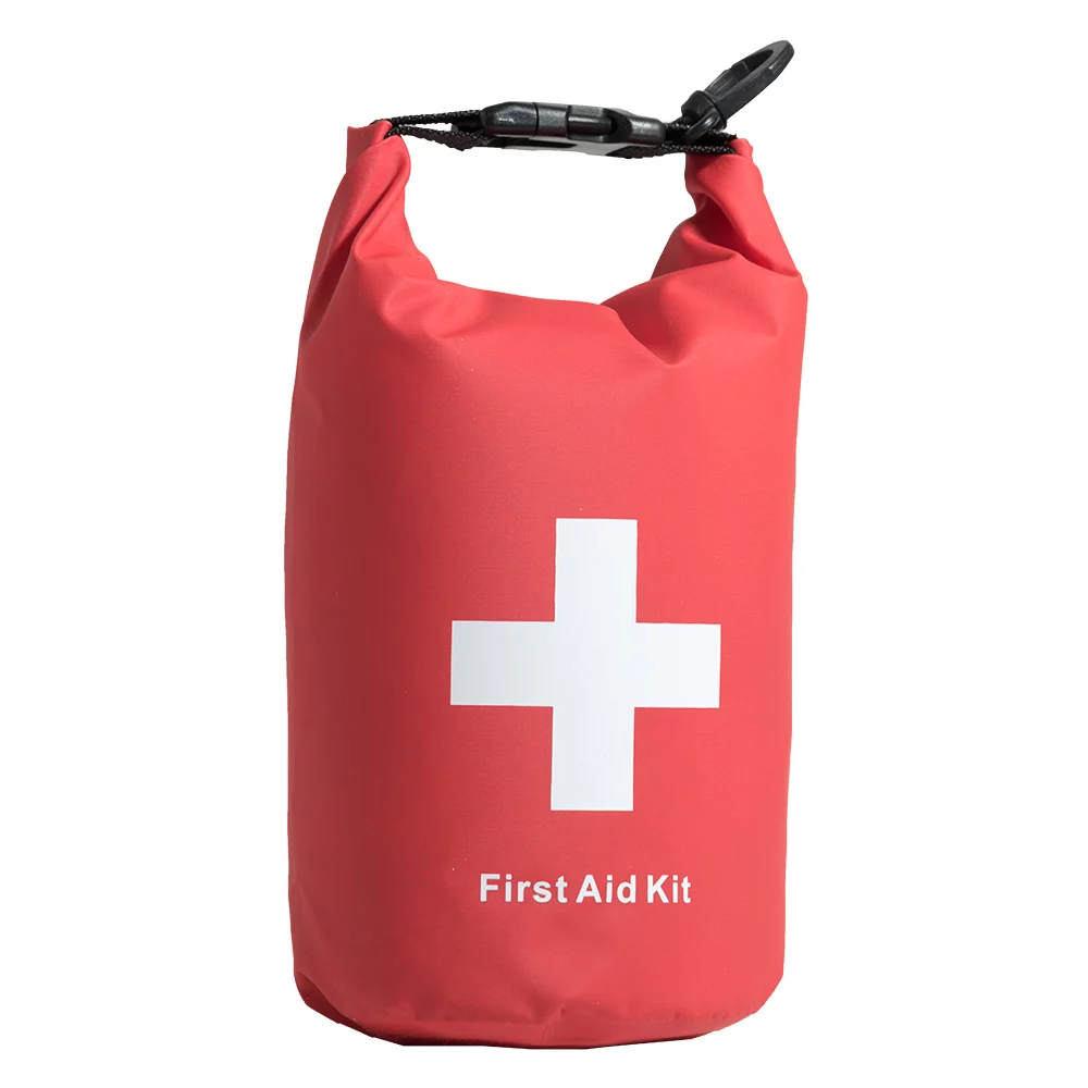 22-teilige Notfallapotheke in Form eines Seesacks (2l) aus Tarpaulin, mit wasserabweisendem, geräumigem Hauptfach mit Wickelverschluss, beinhaltet Erste-Hilfe-Befüllung, u.