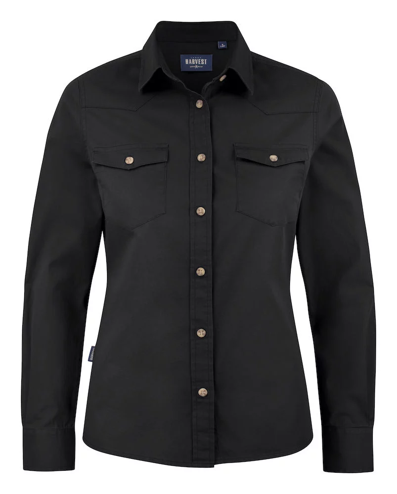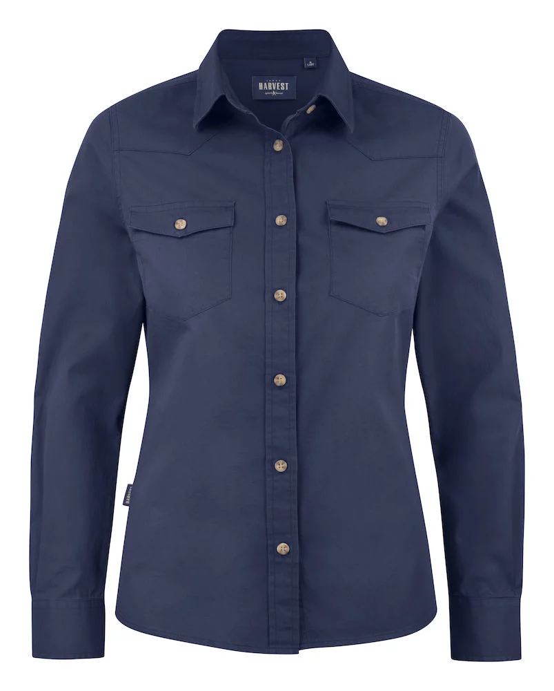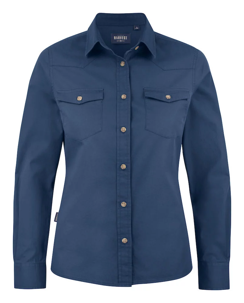 Bluse aus Köperstoff im klassischen Denim-Schnitt. Western-Schultern und Taschen mit Klappen. Weicher Kragen, verstellbare Ärmelbündchen und mit abgerundeter Saum.