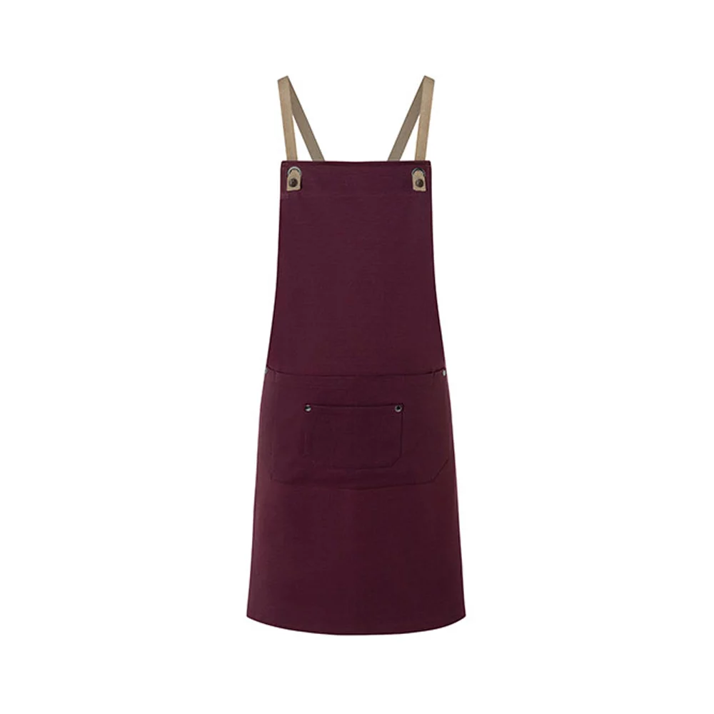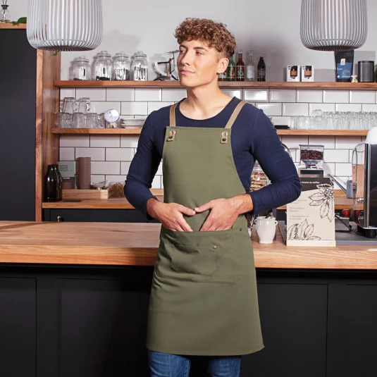 Latzschürze mit abnehmbaren, kontrastfarbigen Bändern. Unverwechselbare Charakteristik aus klassischem Charme und urbanem Look. Besondere Eyecatcher sind die Kreuzträger mit natureller Optik. Beide Schürzenbänder werden über den Schultern getragen und entlasten so den Nackenbereich. Inklusive mittig aufgesetzte Taschen: 1 zentrales Grossraumfach (39 x 20 cm), 2 seitliche Stiftfächer und 1 kleine, aufgesetzte Tasche (17 x 11 cm)