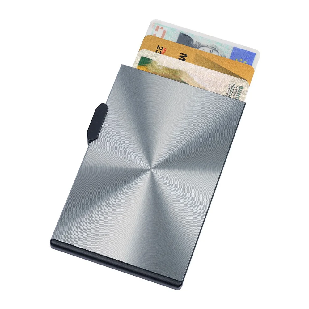 Edles, magnetisches Etui aus Aluminium, mit Schiebemechanismus für bis zu 3 Kredit-/Bankkarten, schützt vor unbefugtem Auslesen von Daten auf RFID-Karten