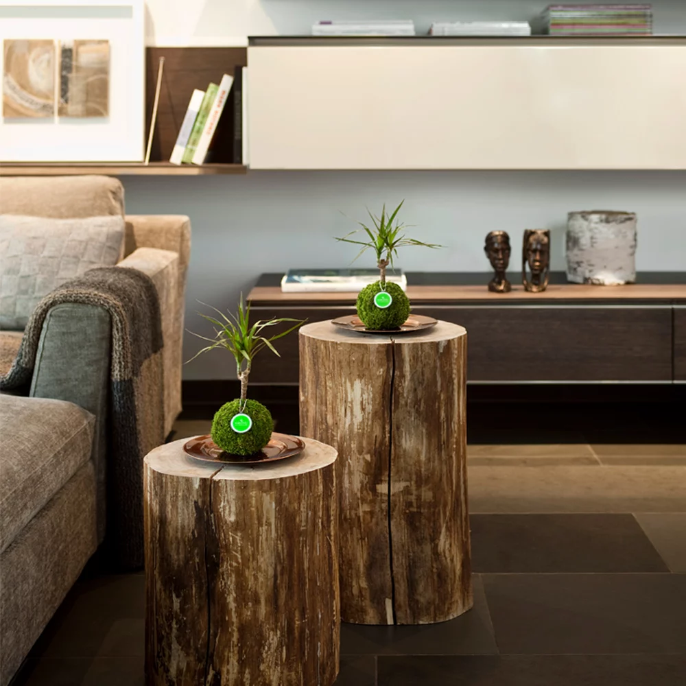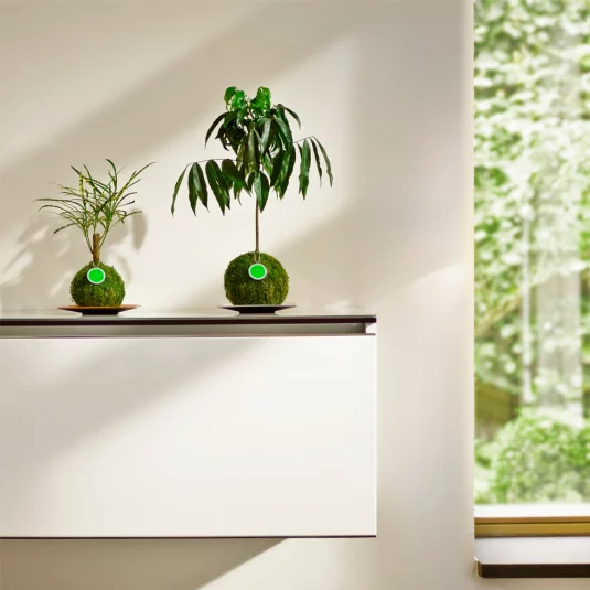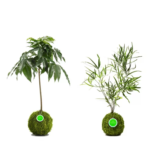 Trendige Miniaturpflanze in der Mooskugel, handgefertigt