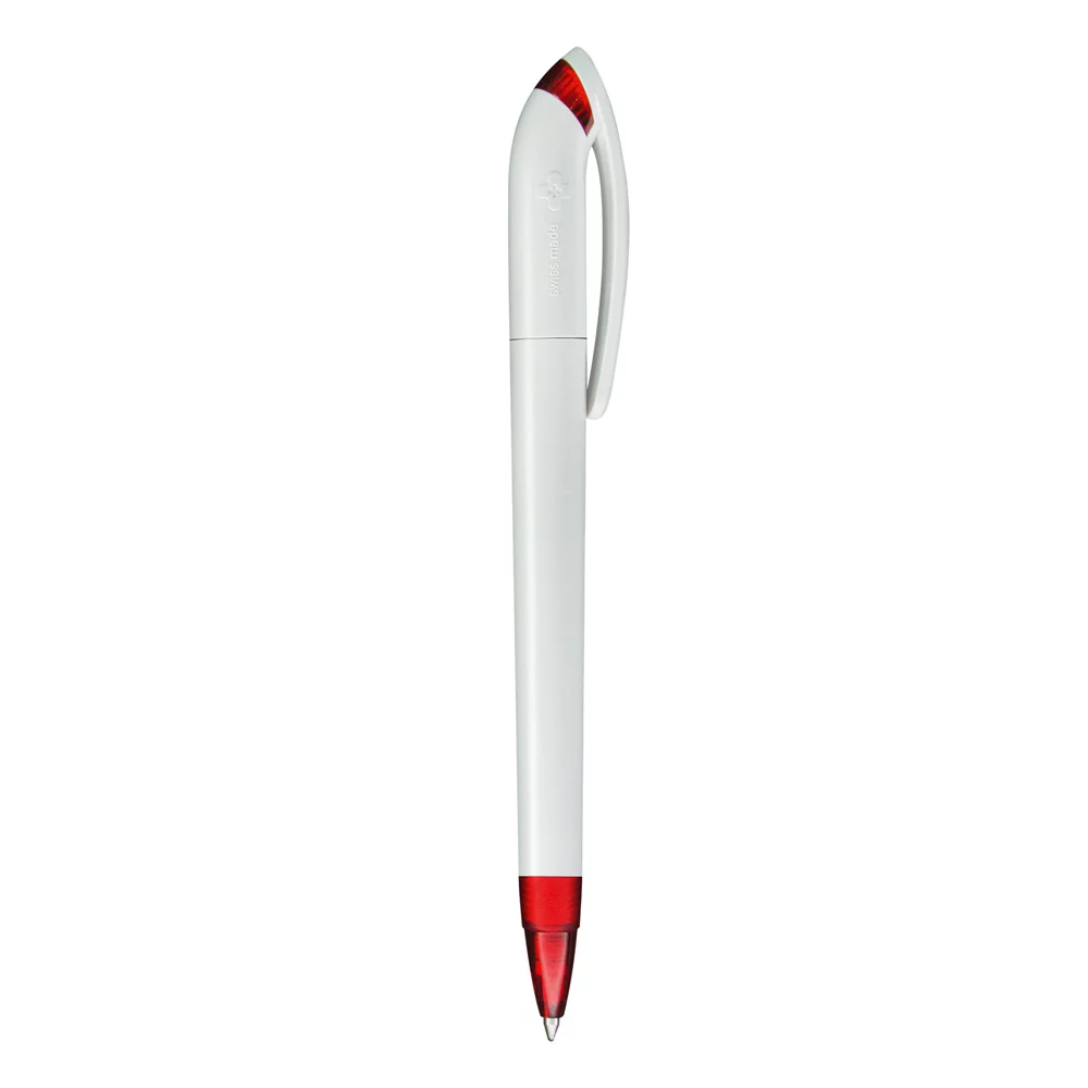 Swiss made, Drehkugelschreiber aus Kunststoff, mit robustem Clip und hochwertiger Kunststoff-Grossraummine (blau oder schwarz), Aufpreis für Metallspitze: SFr.