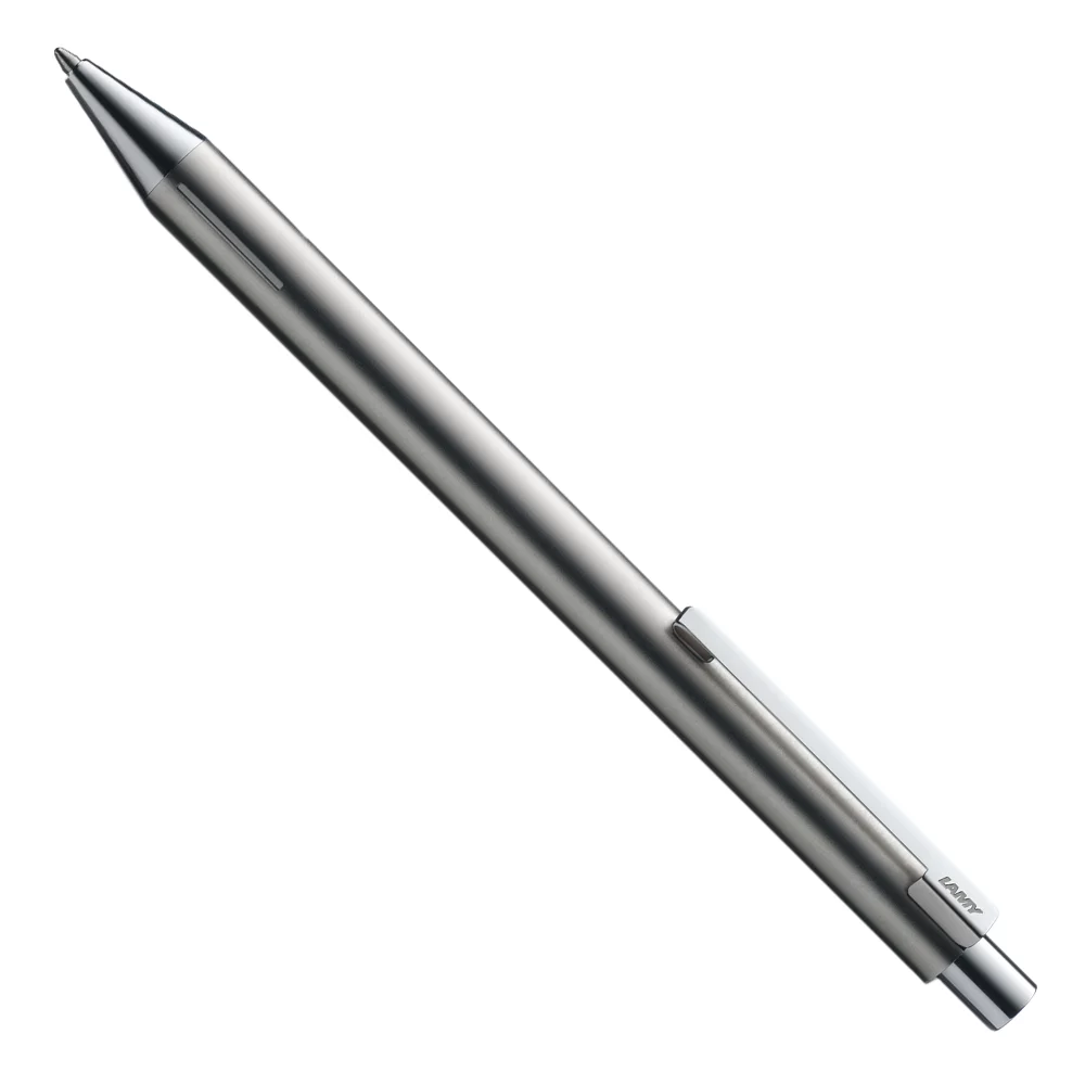 Stylischer Kugelschreiber (Grossraum-Mine M 16, schwarz) aus Edelstahl, mit Metallspitze und charakteristischem Clip