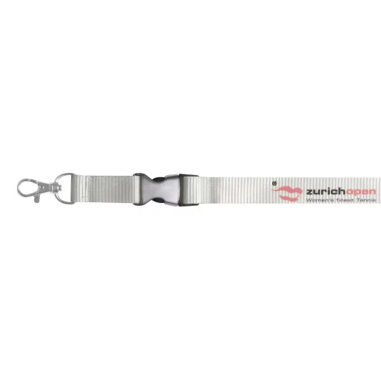 Trendige Badgeholder aus Polyester, mit Sicherheitsclip im Nacken, mit metall Verbindungsclip, Bandbreite wählbar (10-25 mm breit), mit Karabinerhaken, Schlüsselring oder Handyschlaufe, Design und Ausführung nach Wunsch, Mindestbestellmenge 250 Stück