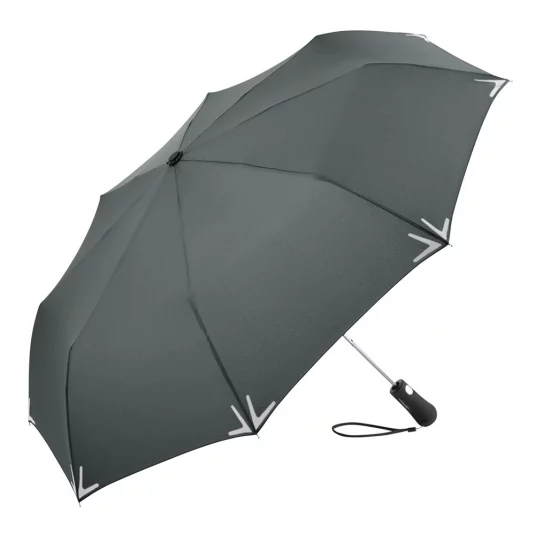 Praktischer, leichter Taschenschirm mit Polyesterbespannung und hochwertigem Metallgestell, an den Keilenden ausgestattet mit reflektierendem 3M™ Reflective Material, mit schwenkbarem LED-Leuchtkopf und Druckknopf für automatisches Öffnen, verpackt in Hülle mit praktischem Verschlussknopf