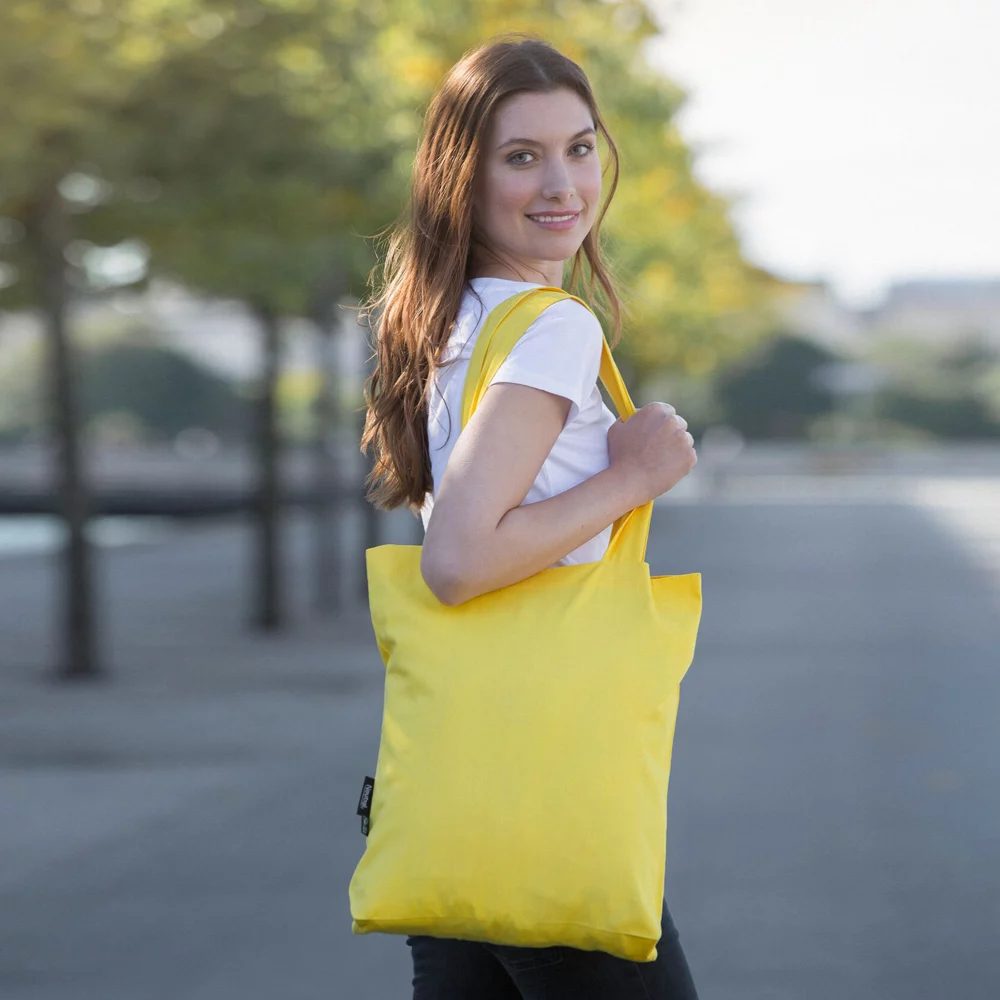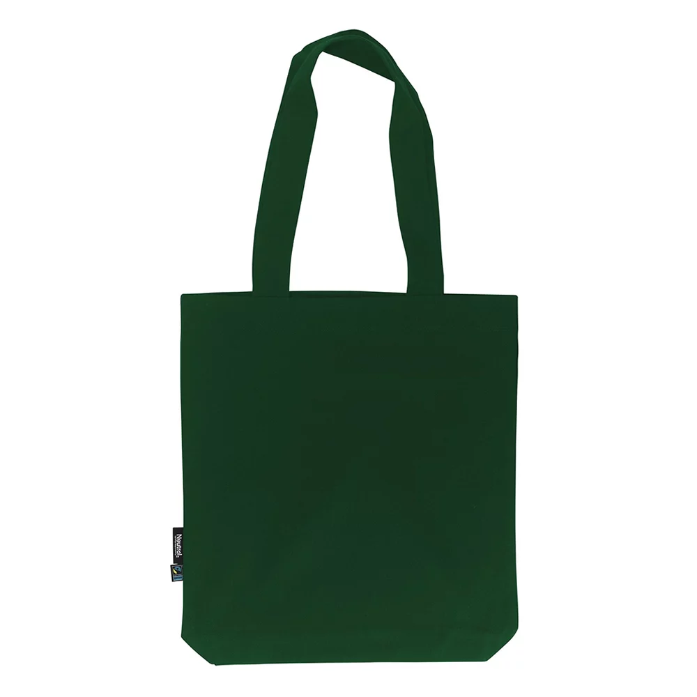Fairtrade-zertifizierter Cotton Bag aus gekämmter Bio-Baumwolle, Twill-Gewebe, lange Griffe, Neutrales und Fairtrade-Flaglabel an der Seite