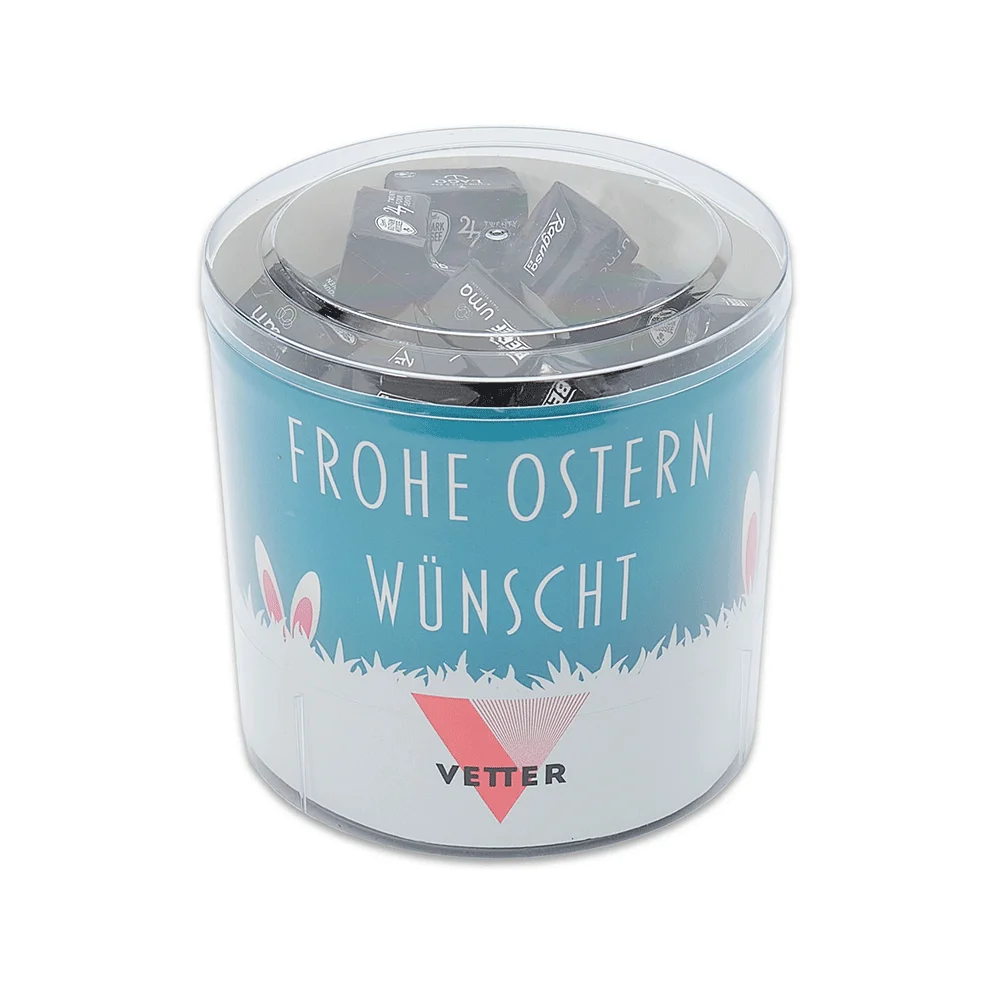 Swiss Made – feinste Pralinen aus Schokolade mit Praliné-Füllung und ganzen Haselnüssen, einzeln verpackt, in der Trommel geliefert, Haltbarkeit ca.
