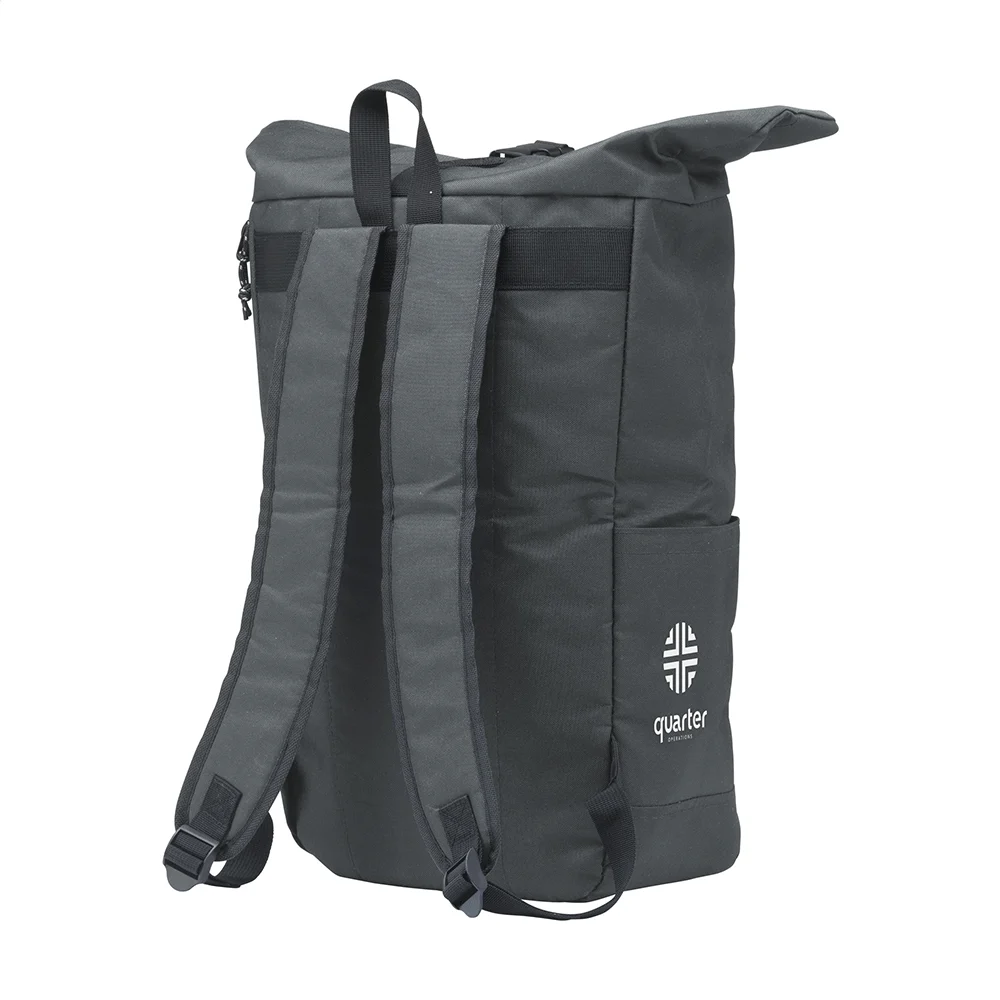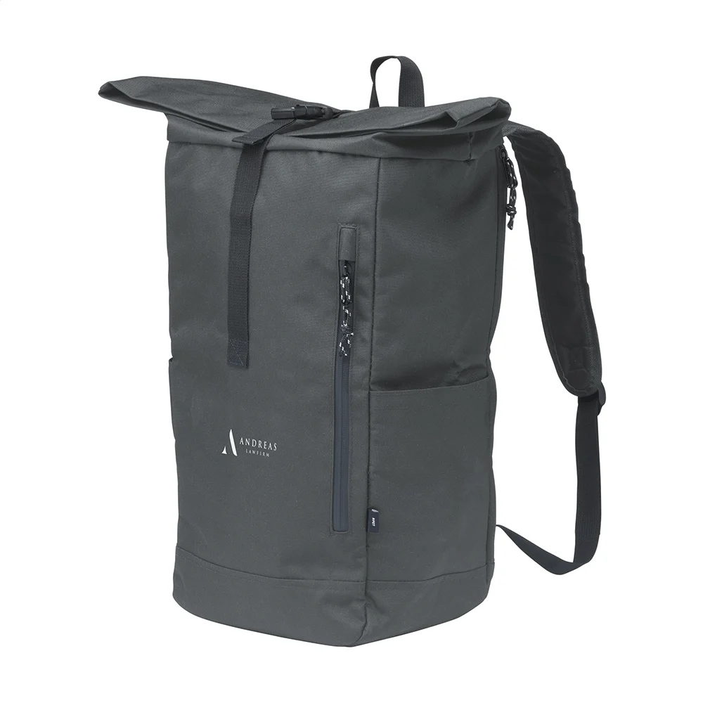 Der perfekte Begleiter für unterwegs – ob beim Picknick, Wandern oder Einkaufen! Robuster, wasserabweisender Kühlrucksack aus rezykliertem PET (rPET) mit praktischem Roll-Top-Verschluss. Der Rucksack verfügt über eine grosszügige Innentasche mit speziellem Kühlfach, das zusätzlich durch einen wasserdichten Reissverschluss auf der Rückseite leicht zugänglich ist. Weitere Aussentaschen bieten zusätzlichen Stauraum. Komfortabel sind die gepolsterten, verstellbaren Schultergurte sowie der gepolsterte Rücken. Volumen: 30 Liter.