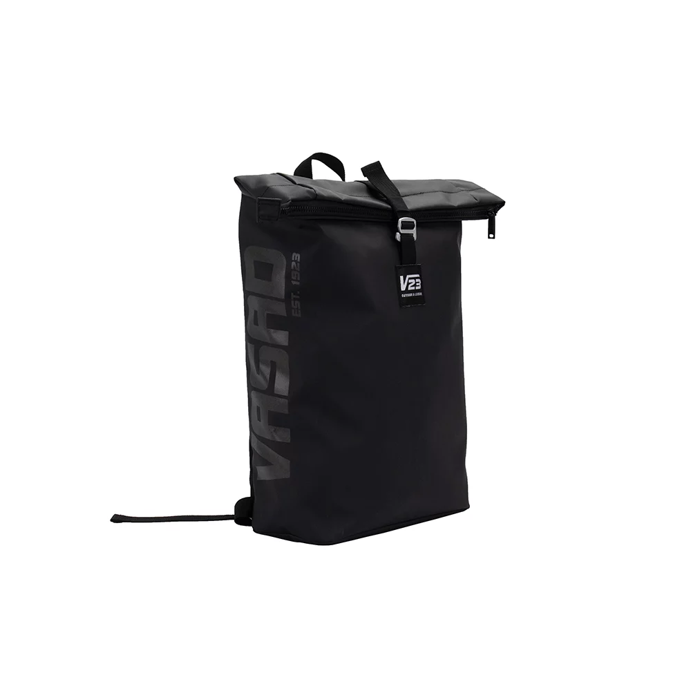 Nachhaltiger Lifestyle-Rucksack aus robuster, wasserdichter LKW-Plane (Tarpaulin), mit Futterstoff aus rPET, gepolstertem Fach für Laptop oder Tablet, praktischem Rollverschluss mit Reissverschluss sowie reflektierendem Aufdruck für eine bessere Sichtbarkeit
