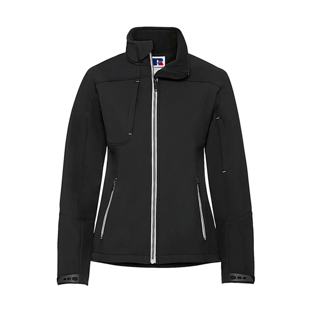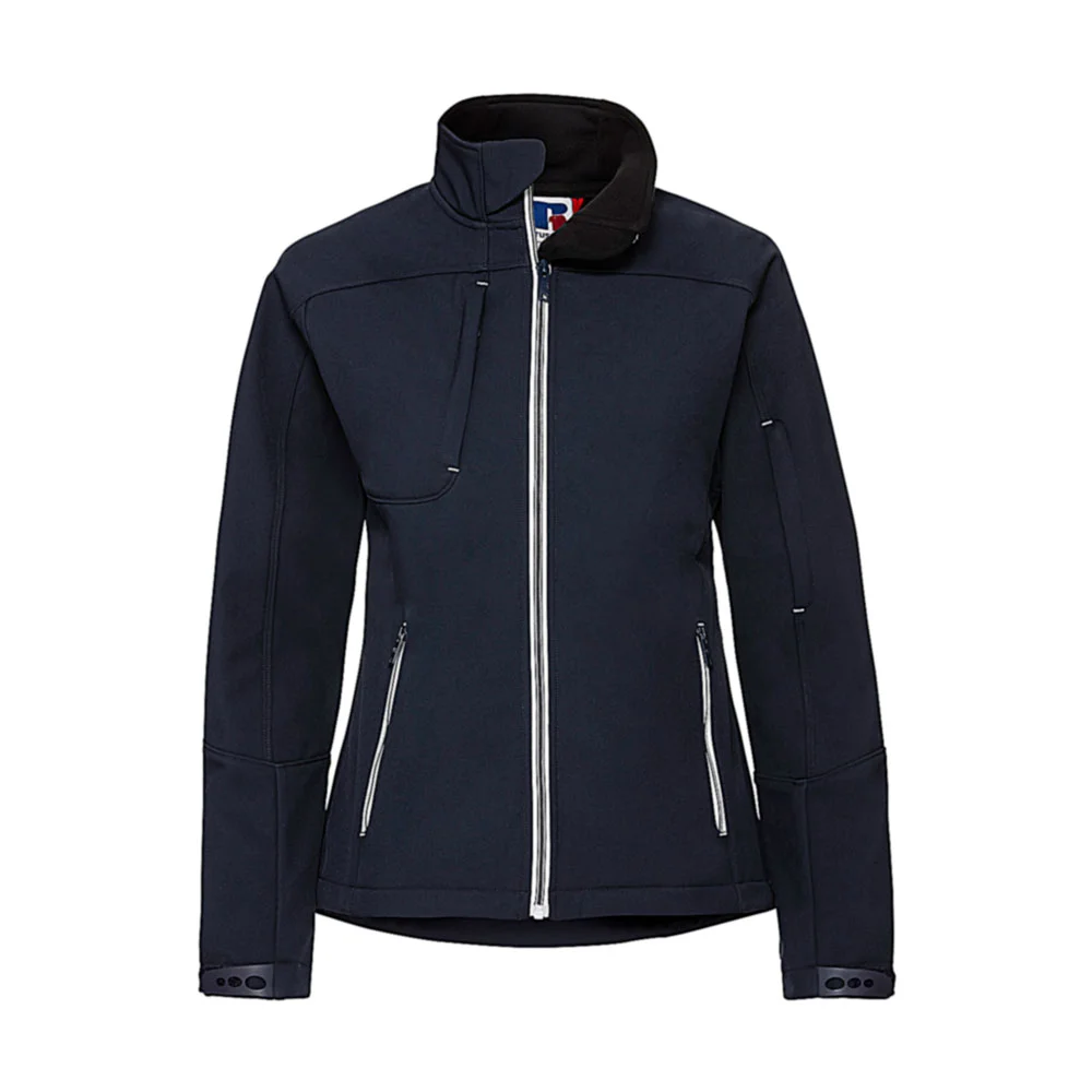 Bionic-Finish® Eco (3-lagige Softshell mit hydrophober Membran), Fluor und PFC frei, Wind- und wasserdicht (5000 mm), Atmungsaktiv (5000 g/m² in 24h), Stehkragen, Hydroshell Air Einsätze im Achselbereich, Brust-, Arm- und Seitentaschen mit Zip, Media-Netztasche innen, Verstellbare Ärmelbündchen, Tailliert.