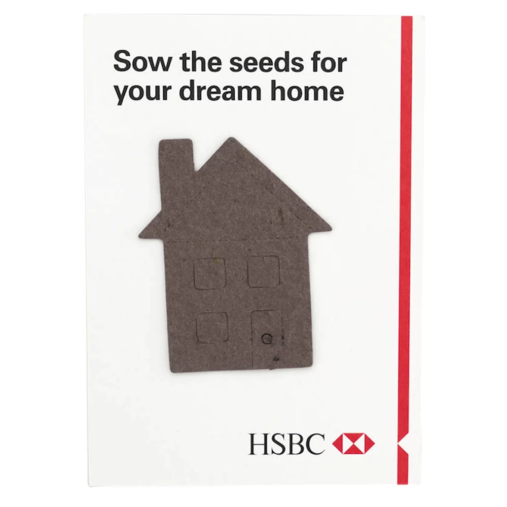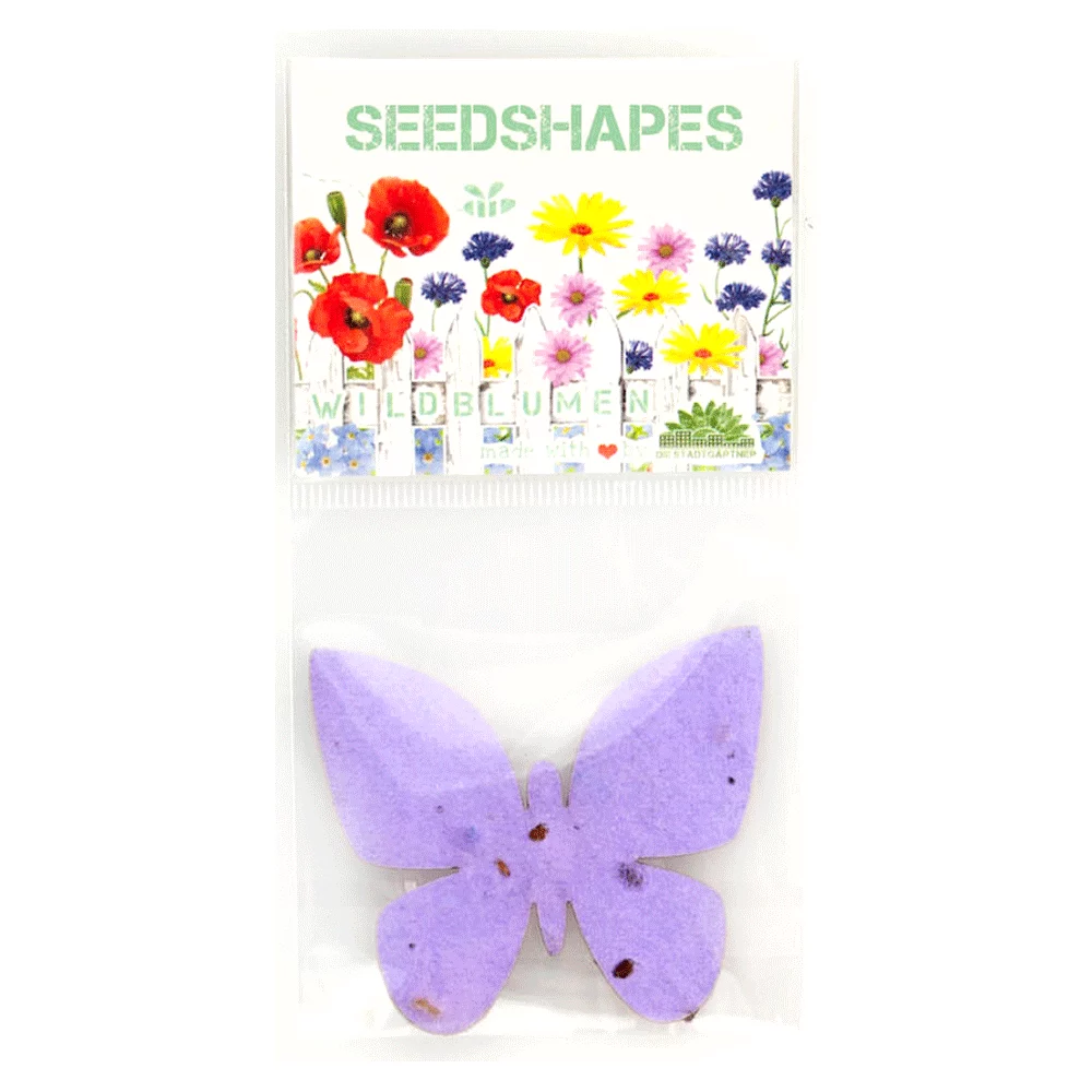 Löst sich - in einen Blumentopf gelegt - umgehend in Blumen auf! Nachhaltiges Papier aus Saatgut, in gestanzter, individueller Form, angebracht an eine Postkarte im Eigendesign