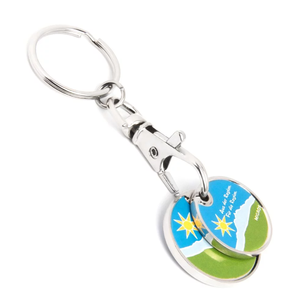 Praktischer Anhänger aus Metall, mit Jetons für Einkaufswagen, Design nach Wunsch (4-farbiger Logo-Kleber, einseitig), Mindestbestellmenge 250 Stück
