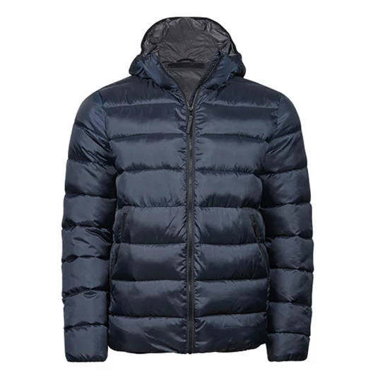 Wasserabweisende Unisex Steppjacke mit Kapuze und Stehkragen. Zwei grosse Fronttaschen und eine Innentasche mit Reissverschluss, Versteckte elastische Ärmelabschlüsse und elastischer Kordelzug mit Stoppern am Saum. Mattes, strukturiertes 1x1 Ripstop-Gewebe.