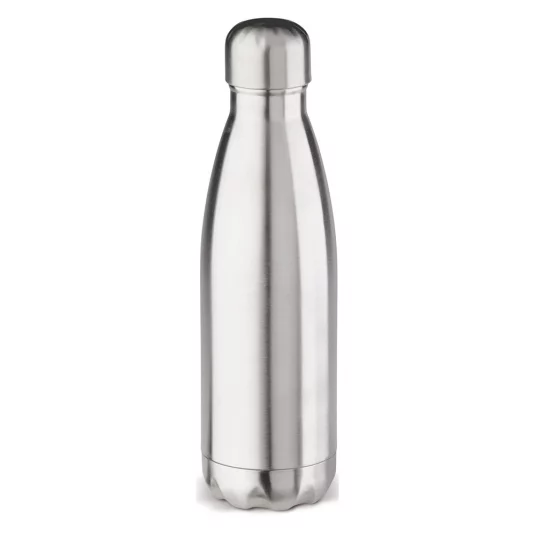 Auslaufsichere, doppelwandige Thermoflasche aus rostfreiem Edelstahl, hält warme Getränke warm und kalte Getränke einige Stunden kalt, Inhalt 0,5 l, Mindestbestellmenge 500 Stück