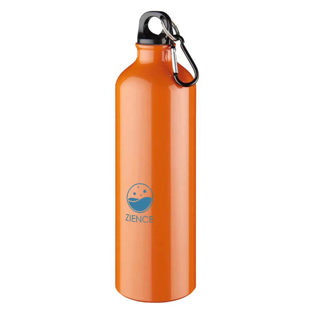 Sportliche Trinkflasche aus Aluminium, mit Schraubverschluss und Karabiner, Inhalt 0,77 l