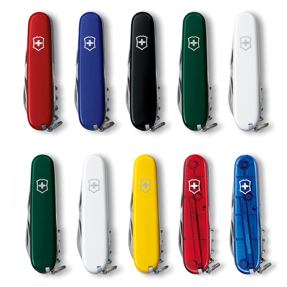 Einer der Bestseller von Victorinox! Aus hochwertigem, rostfreiem Stahl mit 12 Funktionen: grosse Klinge, kleine Klinge, Dosenöffner mit kleinem Schraubendreher, Korkenzieher, Stech-Bohr-Nähahle, Zahnstocher, Pinzette, Kapselheber mit Schraubendreher, Drahtabisolierer und Ring (Anhänger)