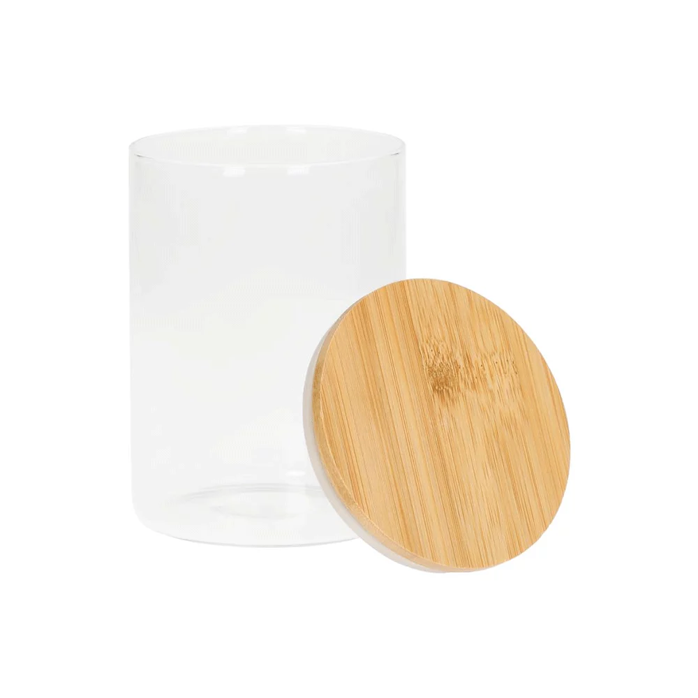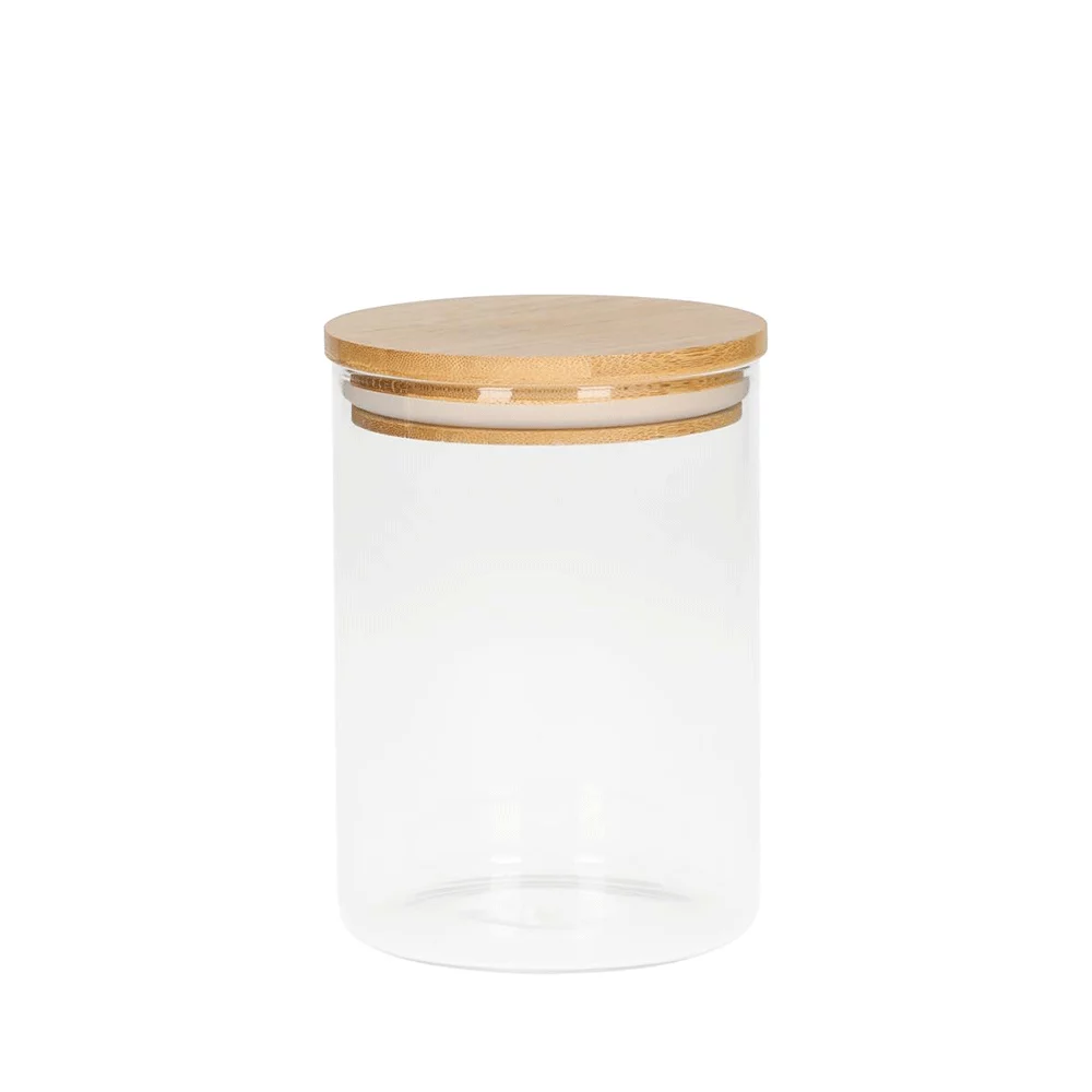 Hochwertiges Borosilikatglas mit Bambus-Deckel, ideal zur Aufbewahrung von Lebensmitteln, Inhalt 0,65 l
