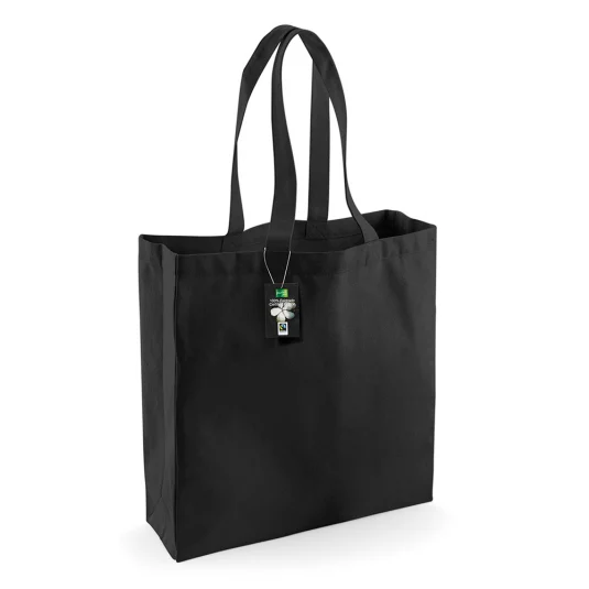 Shopper Bag aus Fairtrade-zertifizierter und gekämmter Baumwolle, kann durch lange Tragegriffe in der Hand oder über der Schulter getragen werden Henkellänge: ca.