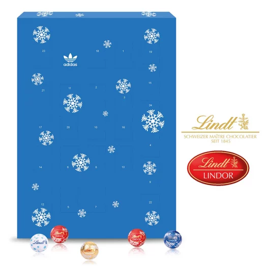 Der perfekte Wand-Adventskalender in Premium-Qualität, befüllt mit 22 Stück Lindt „Minis“ gemischt sowie zwei Lindt Weihnachtsfiguren (ca.