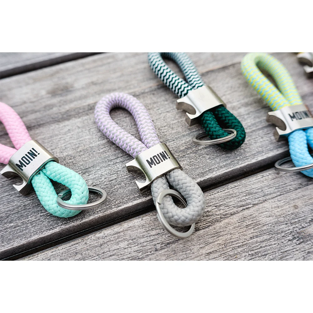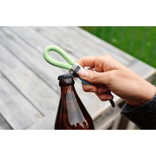 Individuell, innovativ und funktional! Nachhaltig hergestellter Schlüsselanhänger aus recycelten PET-Flaschen (rPET), clever kombiniert mit einem robusten Flaschenöffner aus Metall, ausgestattet mit praktischem Schlüsselring, inklusive individueller Einfärbung in bis zu vier Wunschfarben (nahe Pantone)