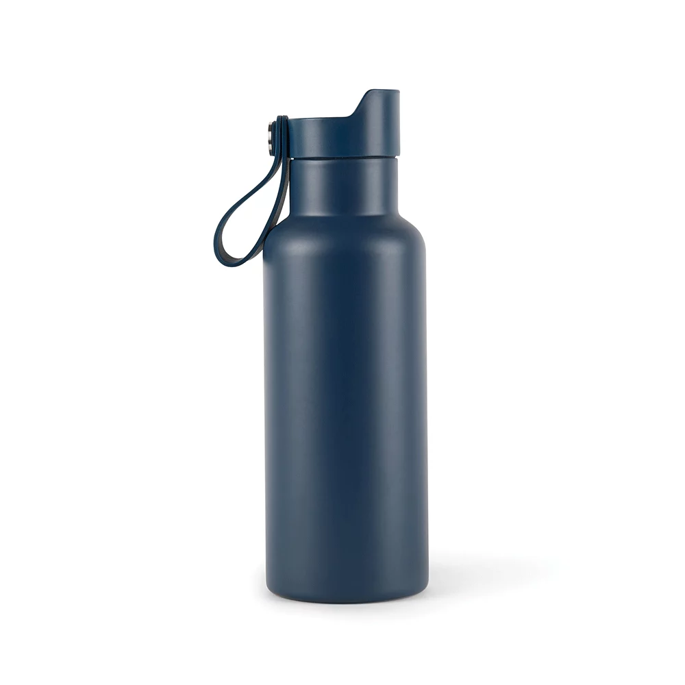 Stilvolle, auslaufsichere Thermoflasche aus doppelwandigem Edelstahl, hält Getränke bis zu 6 Stunden lang heiss oder kalt, einfaches Öffnen durch Knopfdruck, Inhalt 0,5 l