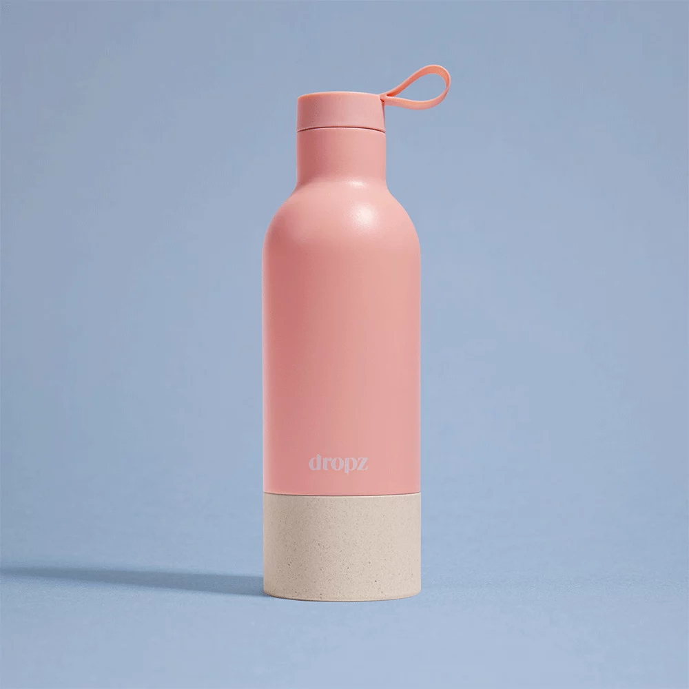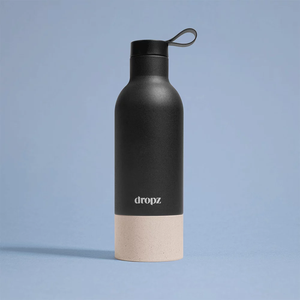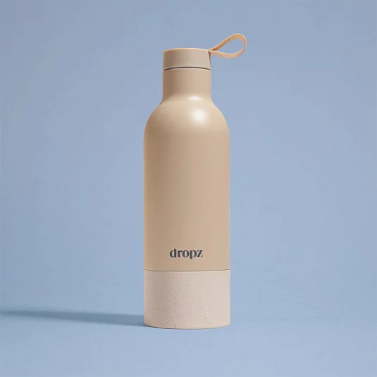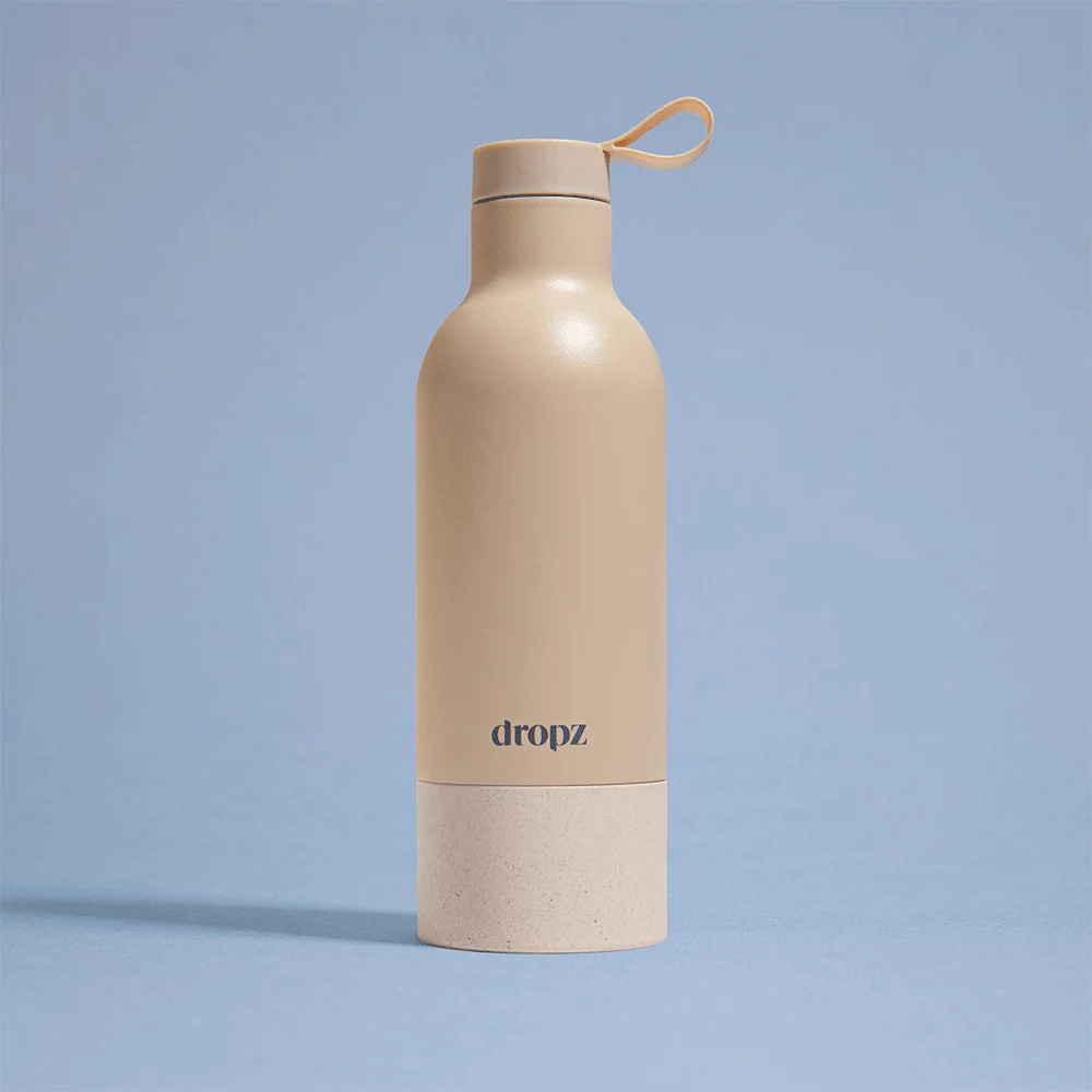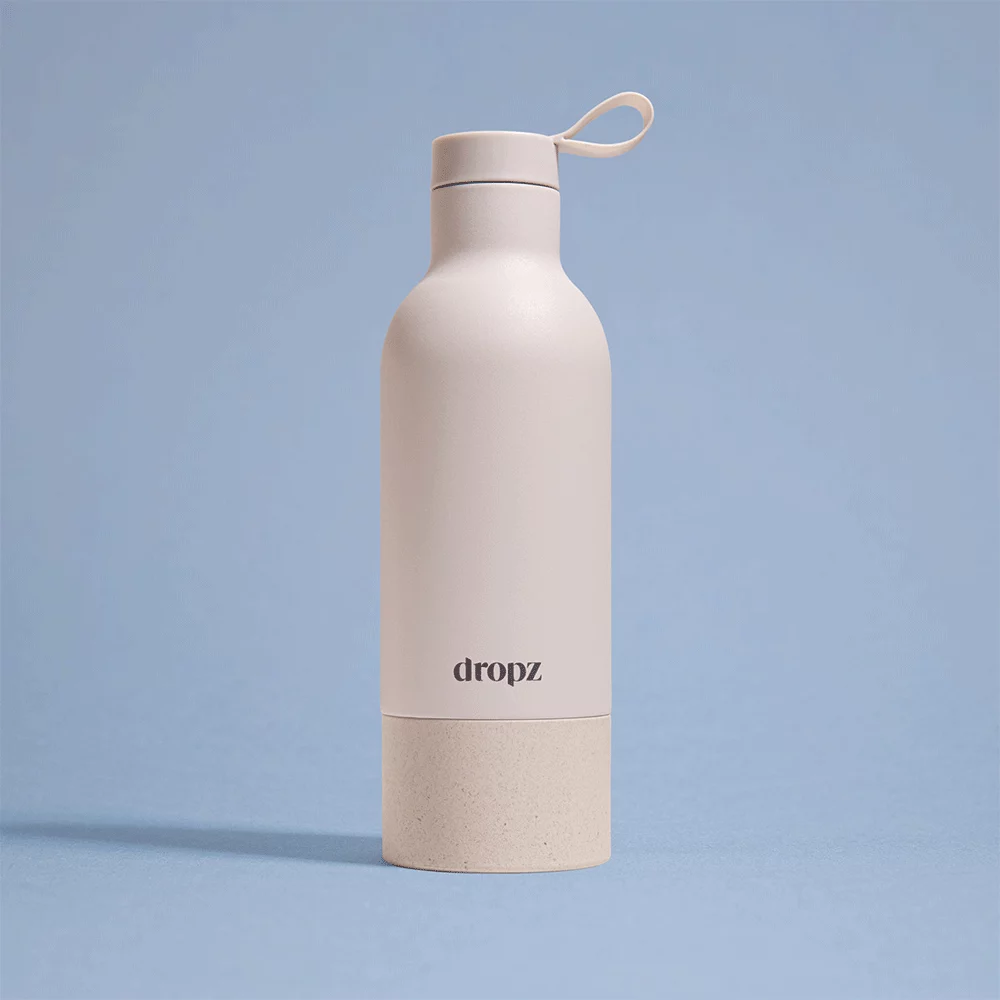 Die innovative, in der Schweiz entwickelte Trinkflasche! Doppelwandige Flasche aus Edelstahl, hält die Flüssigkeit 24 Stunden warm und 12 Stunden kalt, mit zusätzlichem Unterboden für die Aufbewahrung von zwei verschiedenen dropz Sorten und mit praktischer Schlaufe, spülmaschinentauglich, Inhalt 0,5 l