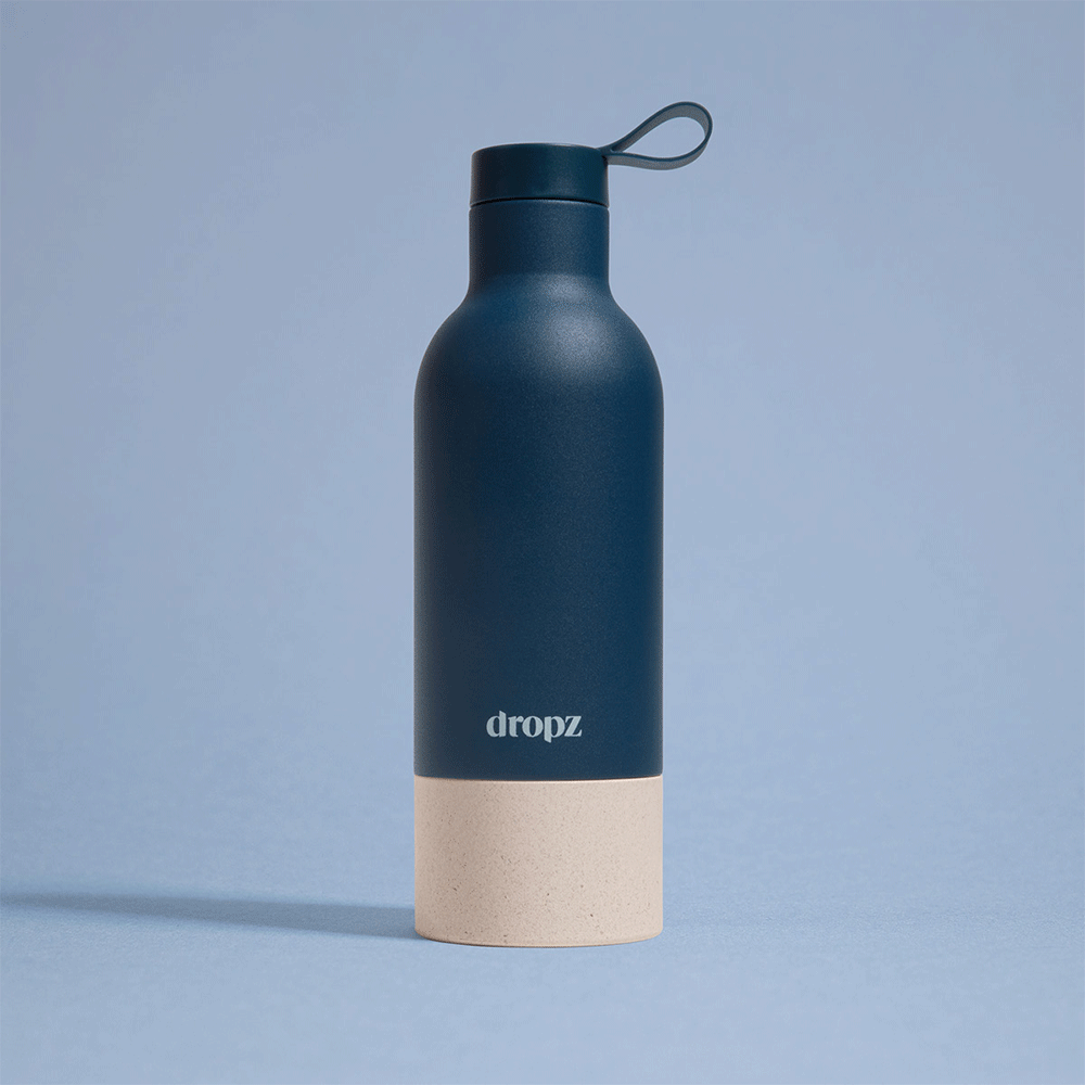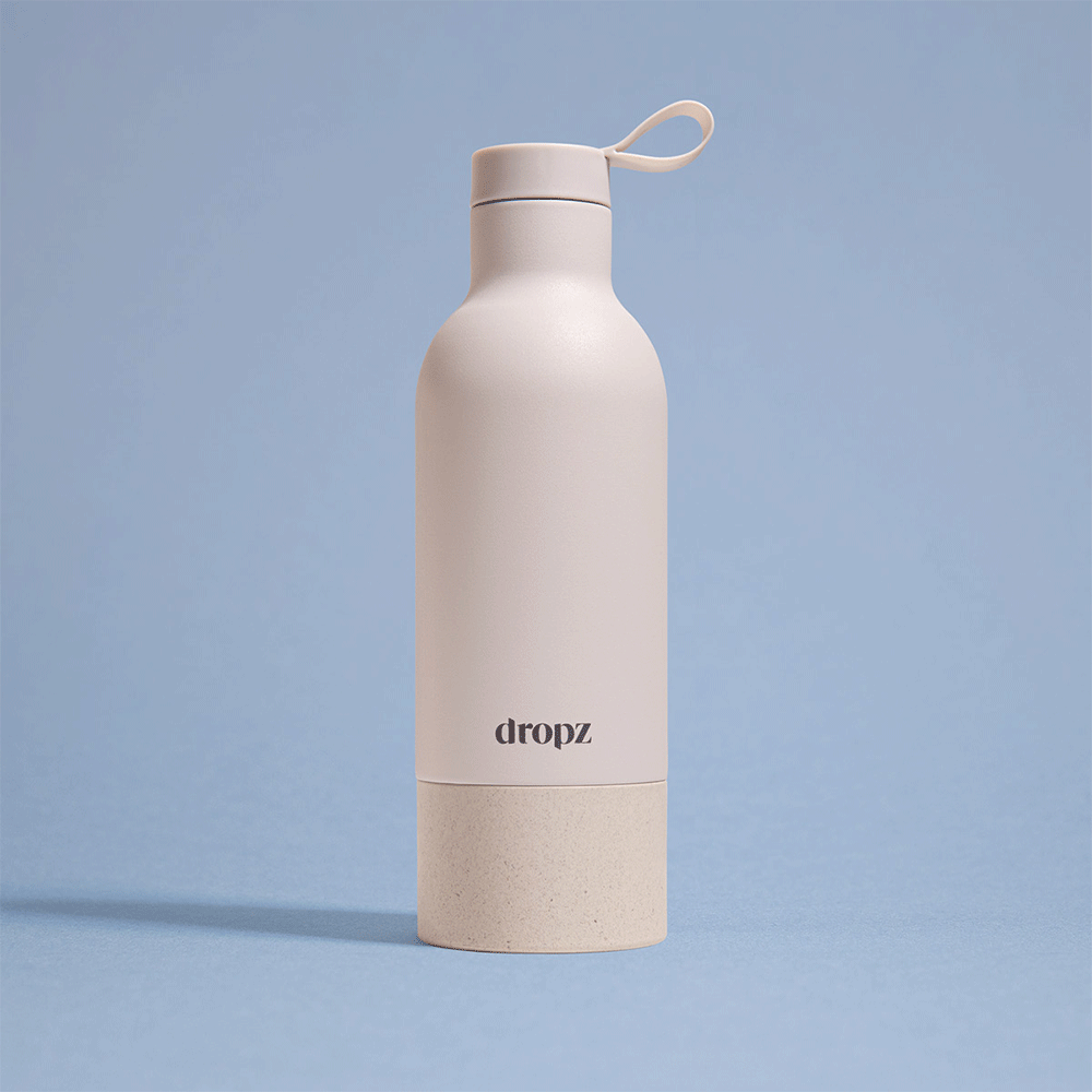 Die innovative, in der Schweiz entwickelte Trinkflasche! Doppelwandige Flasche aus Edelstahl, hält die Flüssigkeit 24 Stunden warm und 12 Stunden kalt, mit zusätzlichem Unterboden für die Aufbewahrung von zwei verschiedenen dropz Sorten und mit praktischer Schlaufe, spülmaschinentauglich, Inhalt 0,5 l