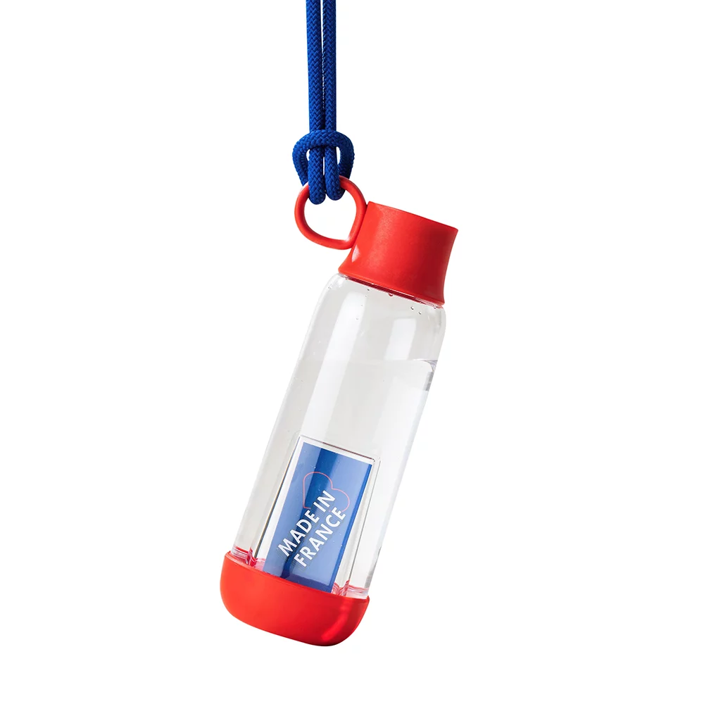 Leichte Flasche aus Tritan (BPA-frei) in originellem Design, hergestellt in Frankreich, mit praktischem Griff und originellem Einsatz für die Individualisierung in der Flasche sowie auf dem Deckel, spülmaschinenfest und geruchsfrei, Inhalt 4,6 dl