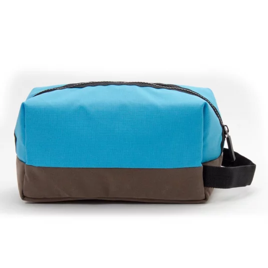 Praktisches Necessaire aus Polyester mit aufgerautem Kunstlederboden, Handgriff, zwei Innenfächern, und ein Netzfach mit Reissverschluss, Mindestbestellmenge 250 Stück