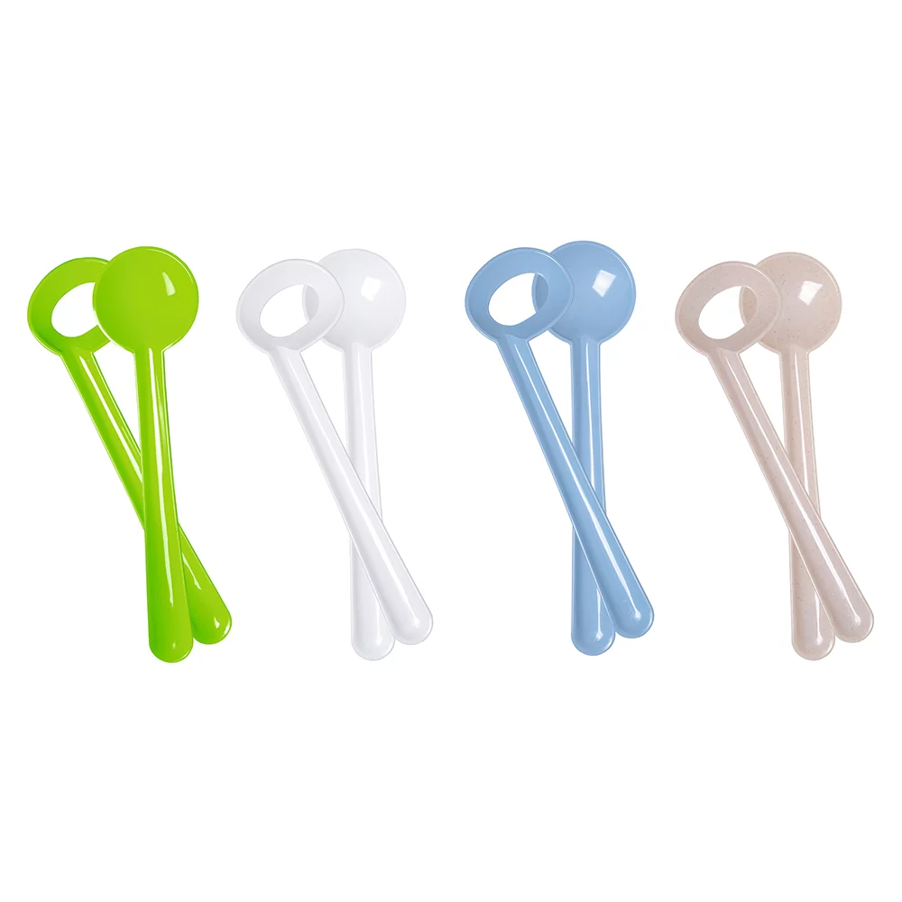 Salatbesteck aus umweltfreundlichem, biobasiertem Kunststoff, der aus nachwachsendem Zuckerrohr (94 %) gewonnen und aus rezyklierten Materialien in Deutschland hergestellt wird, frei von Schadstoffen, lebensmittelecht