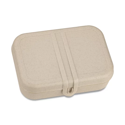 Der perfekte Begleiter für Schule, Büro oder Ausflüge! Langlebige Lunchbox aus biozirkulärem Kunststoff und Holzfasern, vollständig rezyklierbar, lebensmittelecht, spülmaschinengeeignet und mit sicherem Clipverschluss