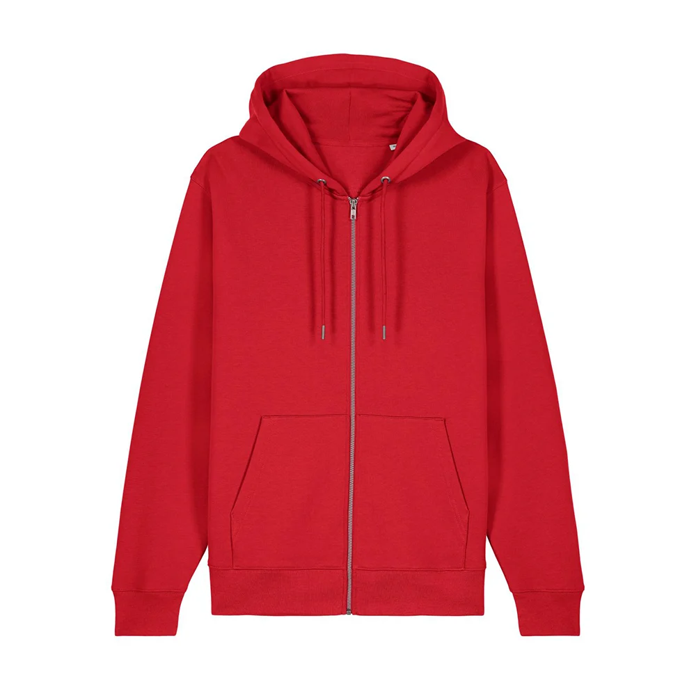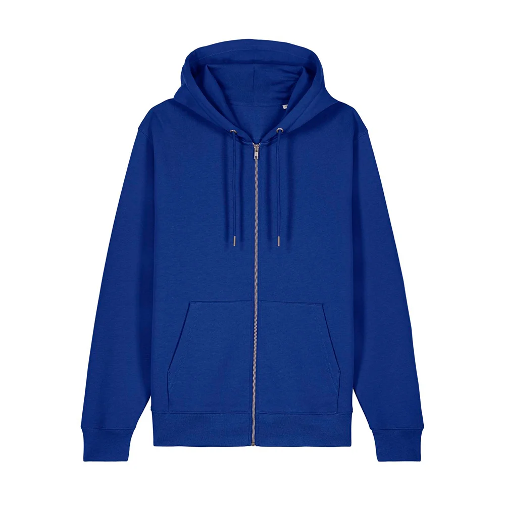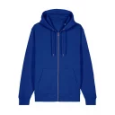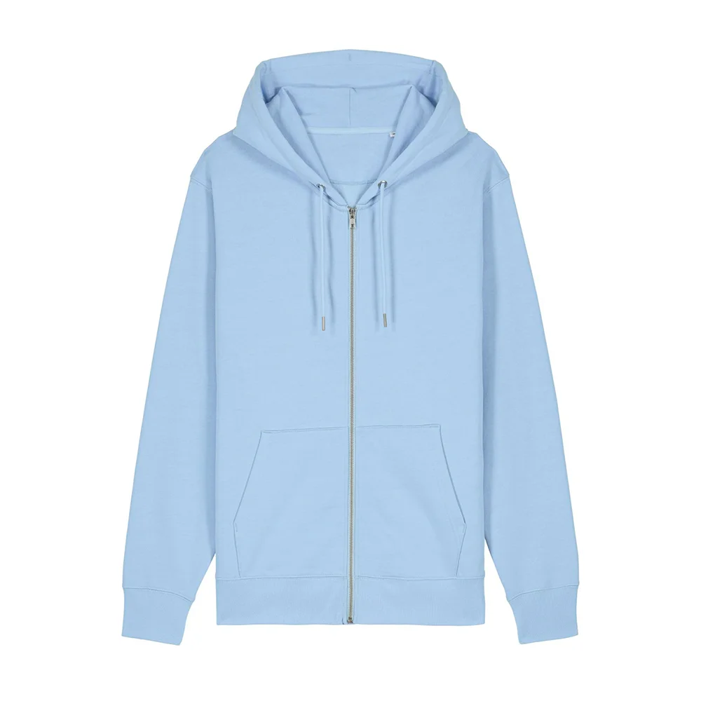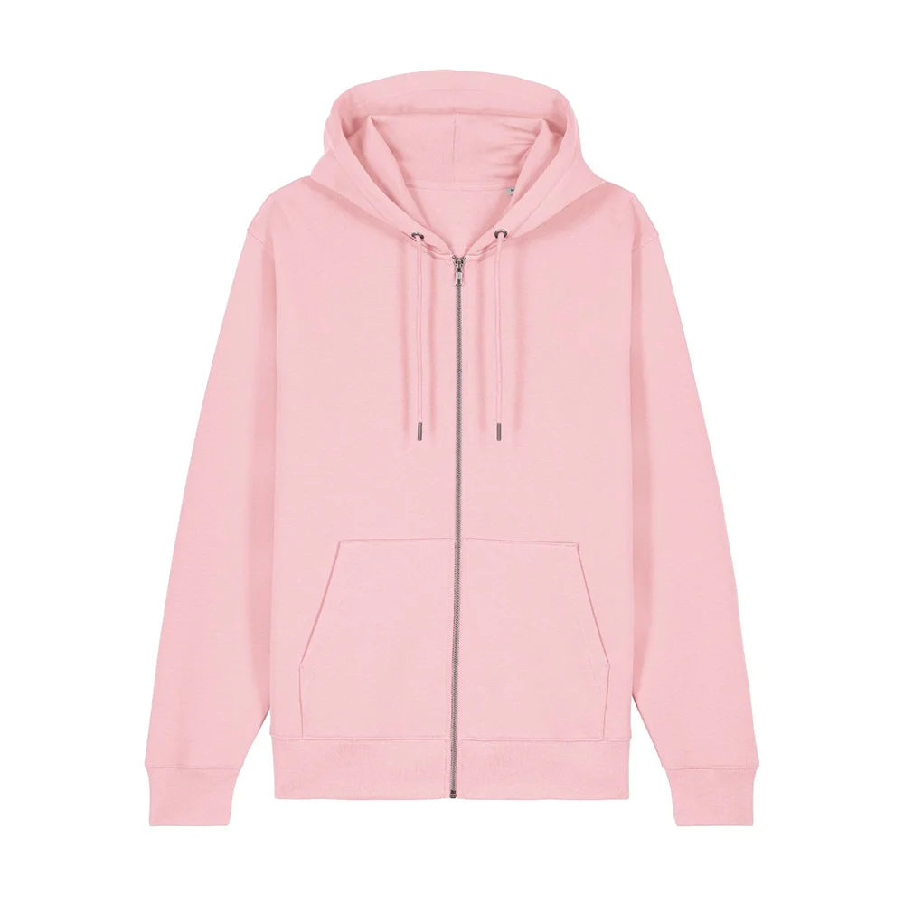 Unisex Hoodie mit Reissverschluss, eingesetzte Ärmel und doppellagiger Kapuze. Runde gleichfarbige Kordel, Kordelenden aus Metall. Nackenband und Reissverschlussinnenseite mit Fischgrätmuster, Ösen und Reissverschluss aus Metall. 1x1 Rippstrick an Ärmelenden und unterem Saum. Kängurutasche mit breiter Doppelabsteppung. Innenseite aufgeraut. Vegan, Fair Wear, Gots und Oekotex-zertifiziert.
