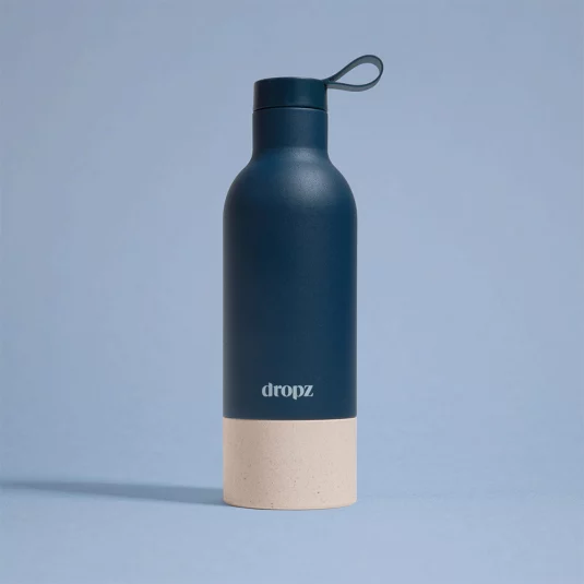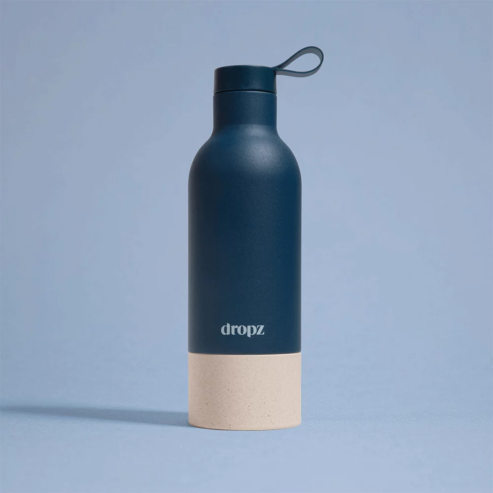 Die innovative, in der Schweiz entwickelte Trinkflasche! Doppelwandige Flasche aus Edelstahl, hält die Flüssigkeit 24 Stunden warm und 12 Stunden kalt, mit zusätzlichem Unterboden für die Aufbewahrung von zwei verschiedenen dropz Sorten und mit praktischer Schlaufe, spülmaschinentauglich, Inhalt 0,5 l