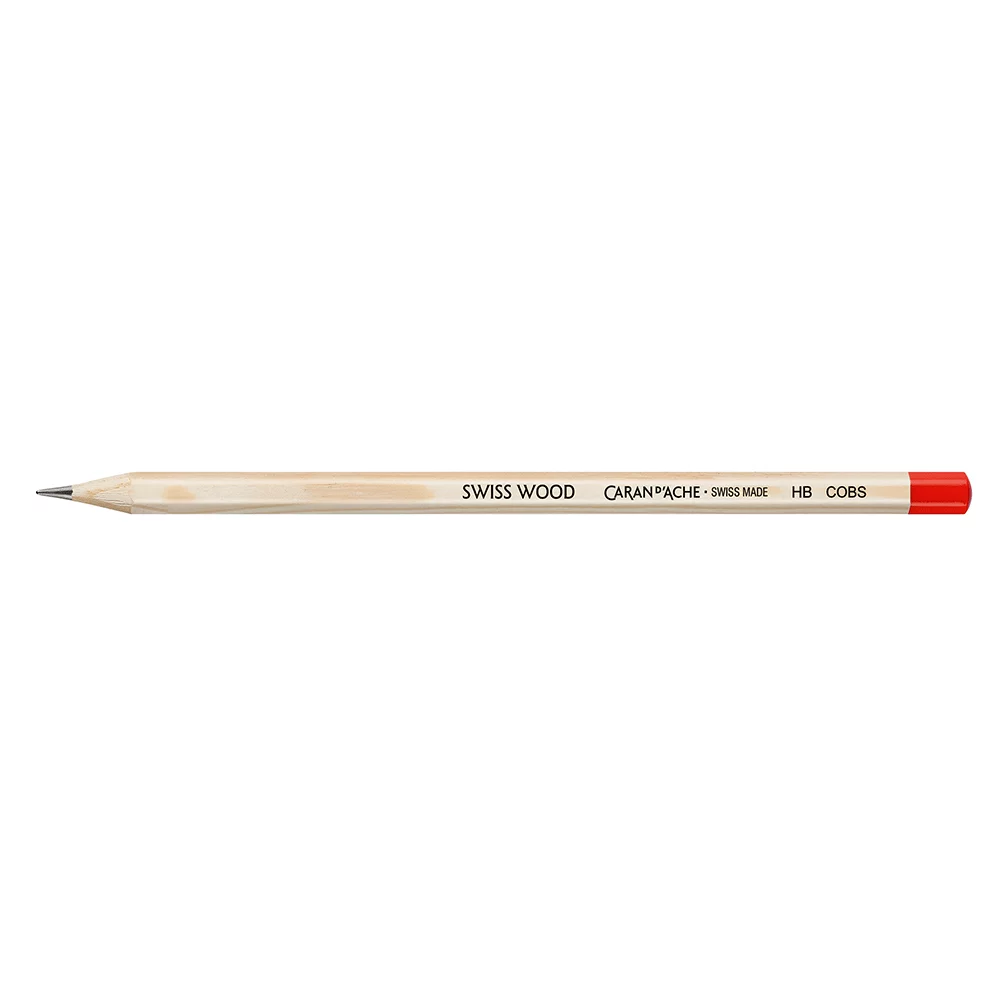 Hochwertiger, sechskantiger „Swiss Made“-Bleistift aus zertifiziertem Schweizer Holz (Buche, Kiefer oder Arve) mit HB-Mine