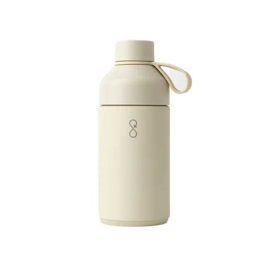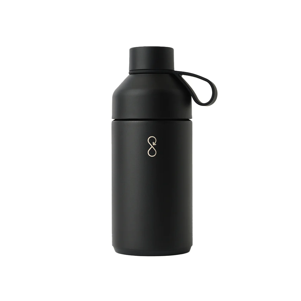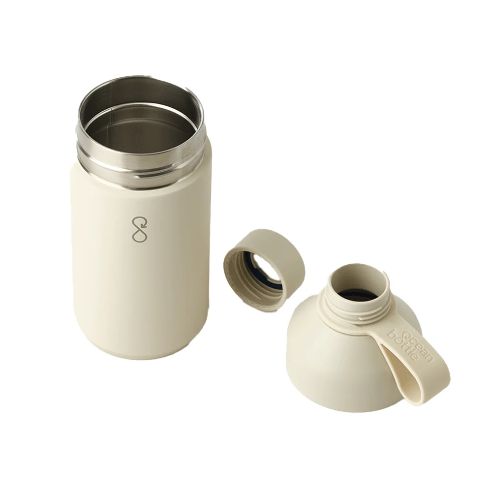 Stop Ocean Plastic! Nachhaltige Trinkflasche aus rostfreiem Edelstahl (65% rezyklierte Materialien inklusive 90% rezykliertem Edelstahl), doppelwandig und vakuum-isoliert, hält Getränke 18 Stunden kalt und bis zu 6 Stunden warm, mit zwei Öffnungen für einfacheres Einfüllen und Auswaschen, auslaufsicher und mit praktischer Trageschleife, 100% spülmaschinengeeignet, geliefert im Einzelkarton (100% rezykliertes Material), Inhalt 0,75 l