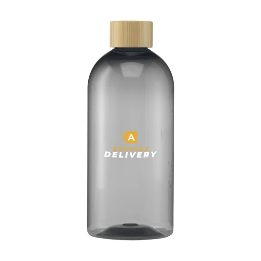 Made in Europe – auslaufsichere Flasche aus 100 % rezykliertem PET, mit Schraubverschluss aus Bambus, Inhalt 0,5 l