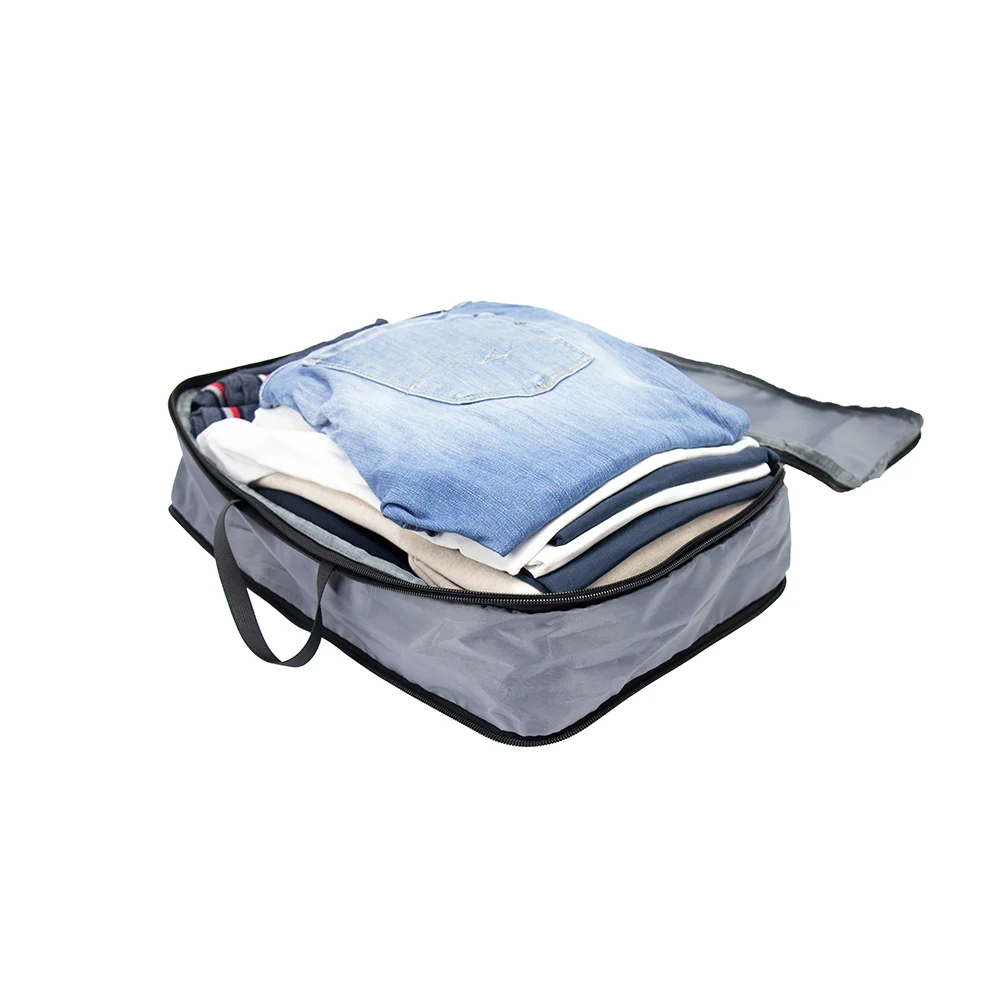 Spart wertvollen Platz im Koffer! Praktisches Set bestehend aus einem grossen und zwei kleinen Beuteln, hergestellt aus rezyklierten PET-Flaschen, mit robustem Kompressions-Reissverschluss zur Volumenreduzierung