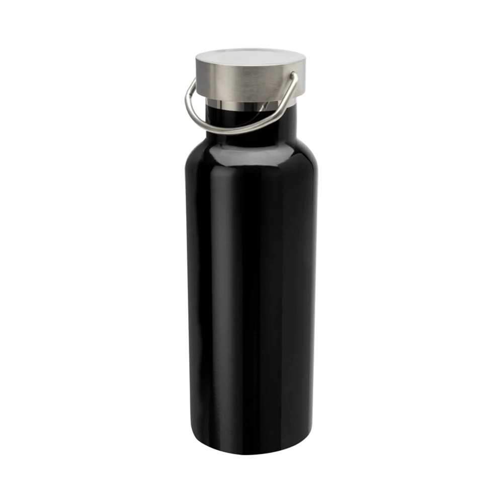 Robuste, doppelwandige und vakuumisolierte Trinkflasche aus rezykliertem Edelstahl, mit Schraubverschluss und praktischem Bügel, Inhalt 0,5 l